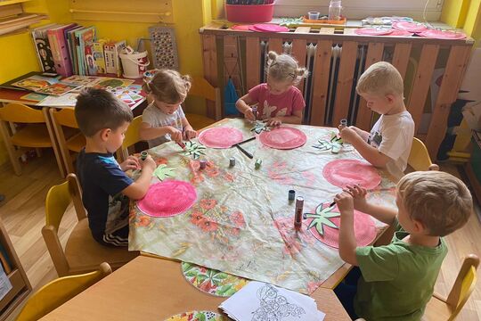 S novým týdnem, začalo i nové téma, které nese název ,,Ovoce a zelenina". Děti poznávaly různé druhy ovoce a zeleniny, proběhla ochutnávka, obtiskování, a také vytváření jahod z papírových tácků. Aktivity byly velmi zábavné a naučné.