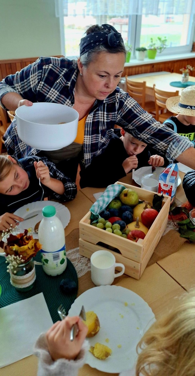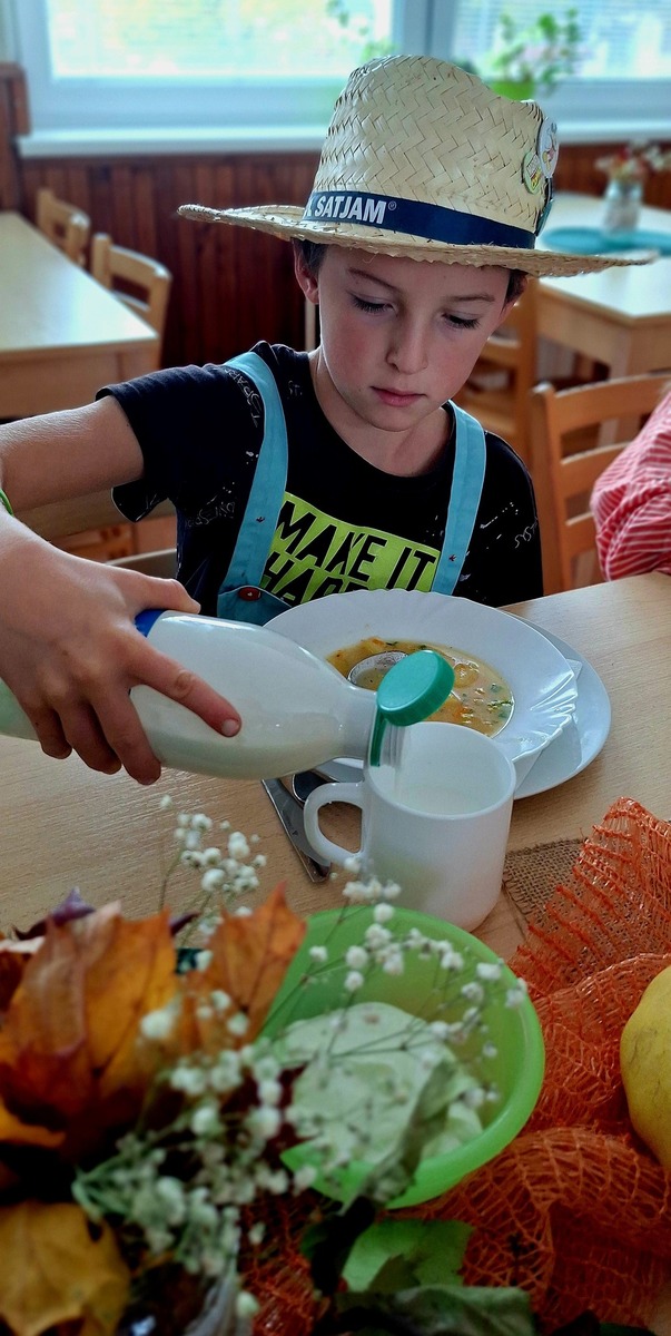 Farmářský den v našem zařízení jsme si užili všichni. Farmářské oblečky byly opravdu nápadité. Zlatým hřebem tohoto dne je oběd v naší jídelně, kde je připravená tématická tabule, pochutnáváme si na bramborech na loupačku s tvarohem a kysaným mlékem. To je vážně bašta.