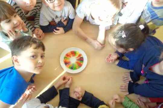 Ve školce jsme si s dětmi udělali hokus pokus v podobě barevných lentilek na talířku a vody. Nejprve jsme si povyprávěli o tom co nám chutná a kupodivu se nemluvilo pouze o sladkostech, ale zejména o ovoci a kvalitní zmrzlině z rakytníku vyráběné v naší obci. Během pokusu děti viděly změnu a přestože se jim "duha" na talíři líbila, starší to okomentovaly slovy "...ale jestli ty barvičky nejsou opravdové jídlo, tak to už by mi ty bonbony moc nechutnaly..."
