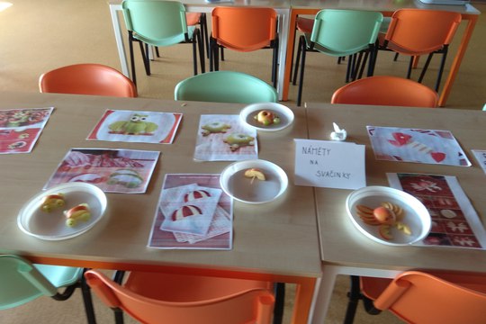 Letošní rok je dostatek veškerého ovoce. Inspirovali jsme se naším tradičním ovocem - JABLKEM. Středeční odpoledne 10.10. jsme strávili s dětmi v jídelně a tvořili a tvořili. Na úvod paní učitelka Křivánková popsala jednotlivé druhy jablíček, rozdělila např. podle chuti, připravila výstavku. A po krátké přednášce už se tvořilo - kreativní svačinky z jablek, klasický štrůdl, vykrajování jablíček, napichování křížal na čerstvé jablko, pečení jablíček naplněných marmeládou a skořicí.