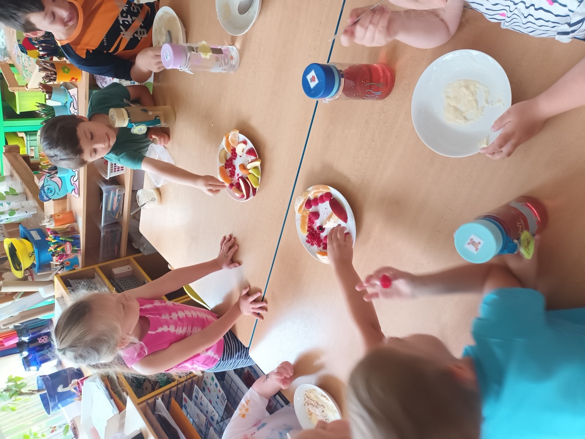 Poslední odšťavńování v tomto školním roce ve třídě Krteček proběhlo v netradičním tónu. Děti si zvolily místo klasického odšťavnění ovoce a zeleniny, že si udělají samy obložené talíře dle vlastní fantazie. Zapojili se jednotlivci i dvojice kamarádů. Prázdniny děti prožijí i s rodiči určitě ve zdraví! Přejeme všem krásné léto.