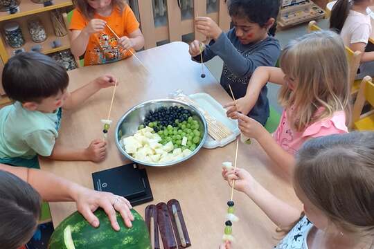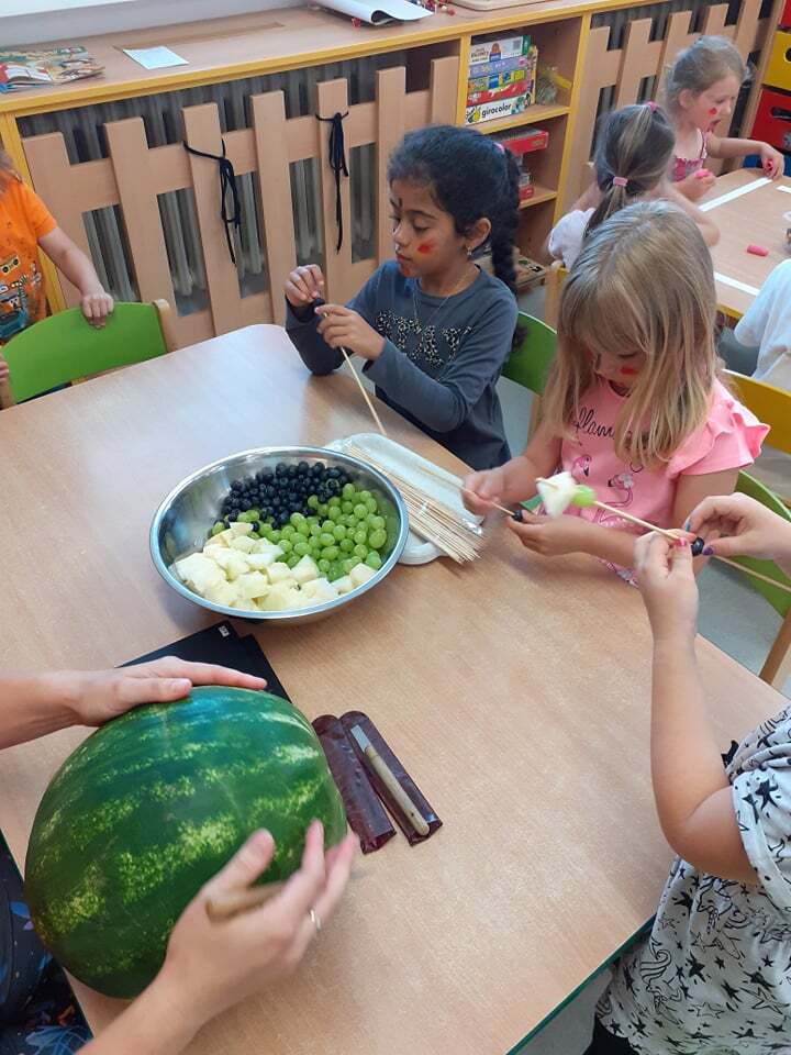 Tento týden nás provází téma "Cestování po světě". Vydali jsme se tedy do Ameriky za indiány. Děti se seznámily se životem indiánů. V centrech aktivit pak plnily úkoly zaměřené na indiány. V domácnosti děti tvořily ovocné šípy - napichovaly meloun, borůvky a hroznové víno na špejli. Paní učitelka mezitím dětem z melounu vykrájela indiánskou masku a děti poté napíchaly své šípy do melounu.