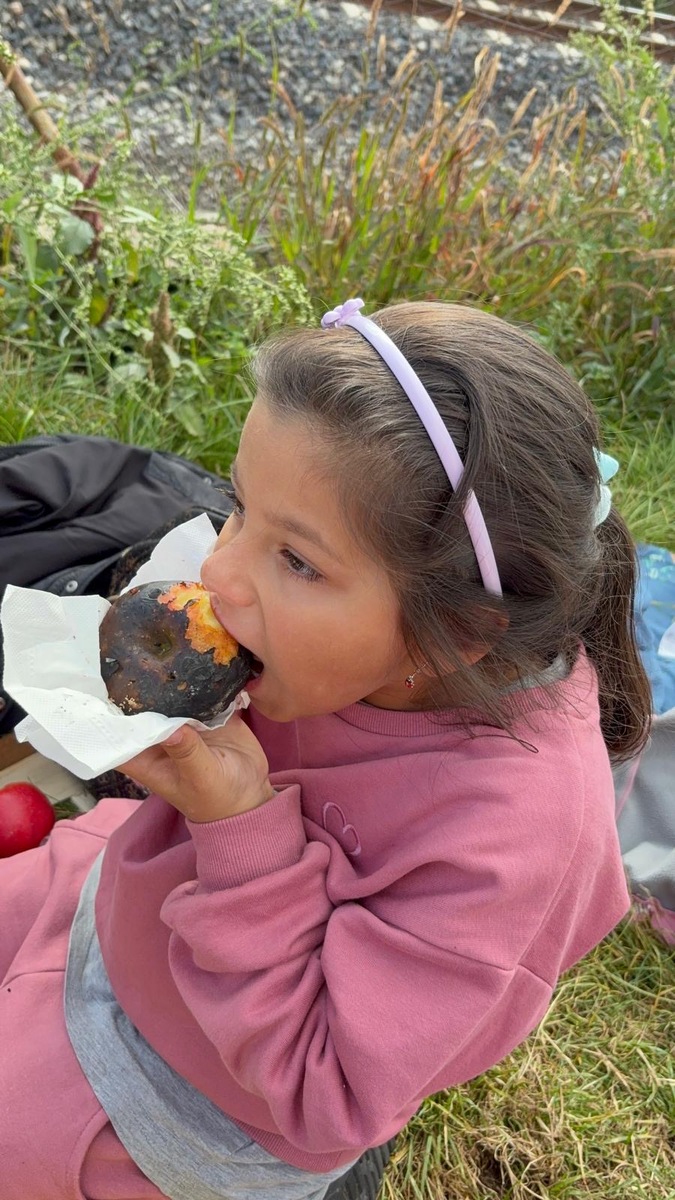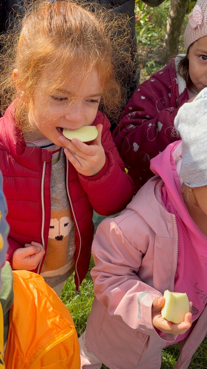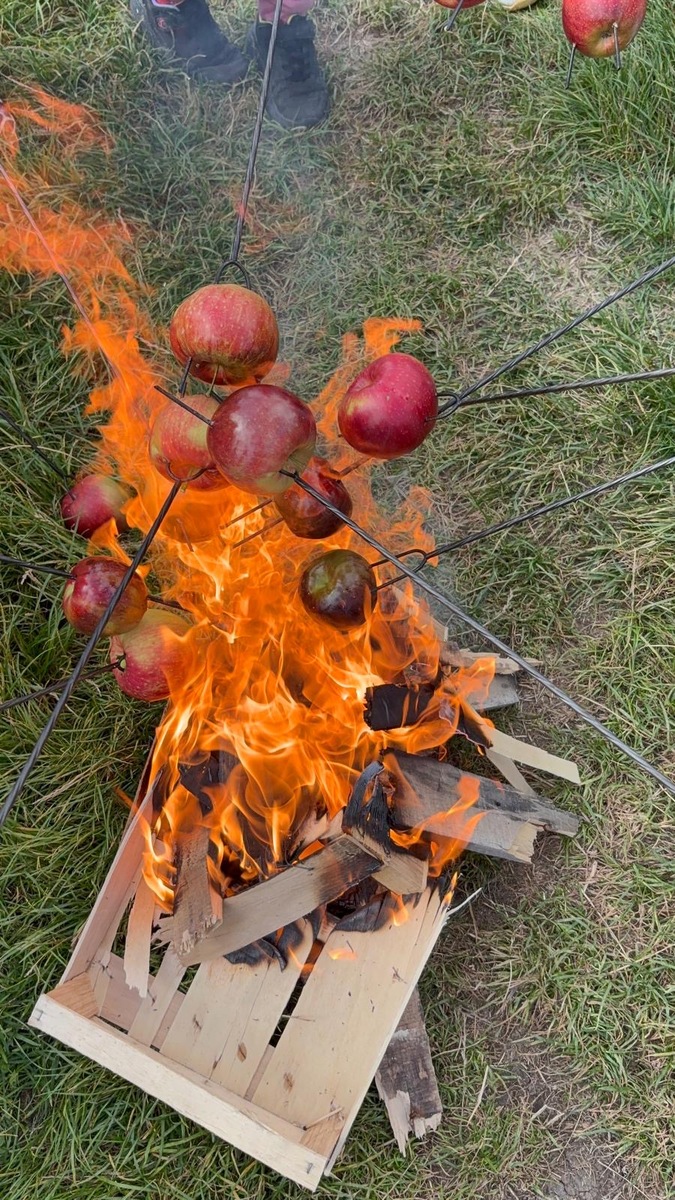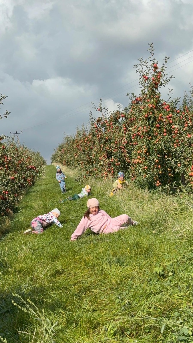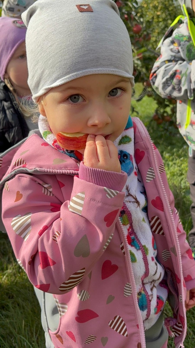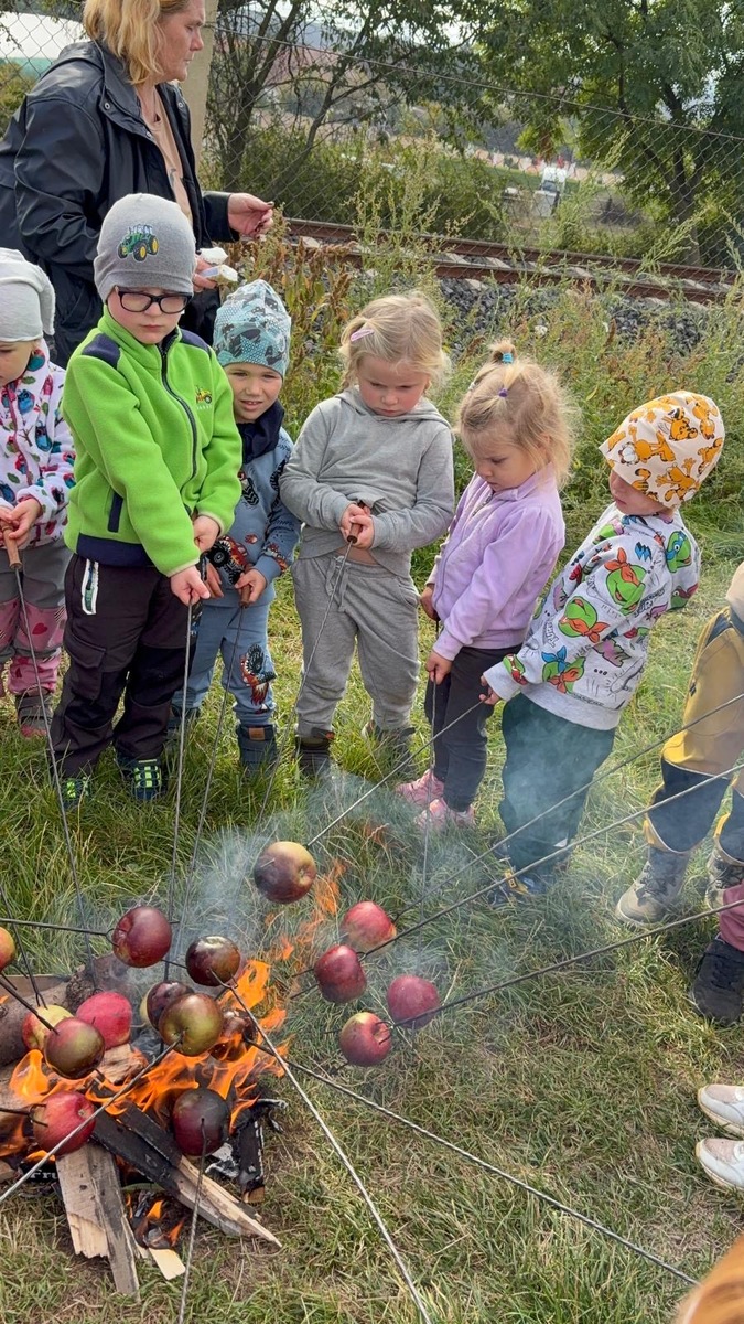 Dnes jsme navštívili nedaleký jablečný sad plný šťavnatých a luxusních jablíček. Děti jedly jako poprvé. Pokud se jablko dá utrhnout přímo ze stromu a vybrat si- o to chutná více. Na závěr sluníčkového dne děti čekalo i opékání jablíček nas ohněm. Nádherný den a nezapomenutelné zážitky