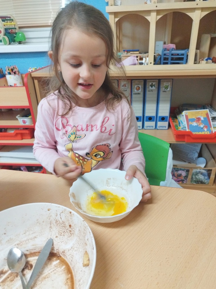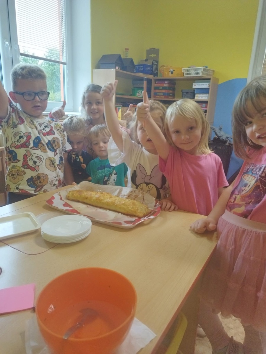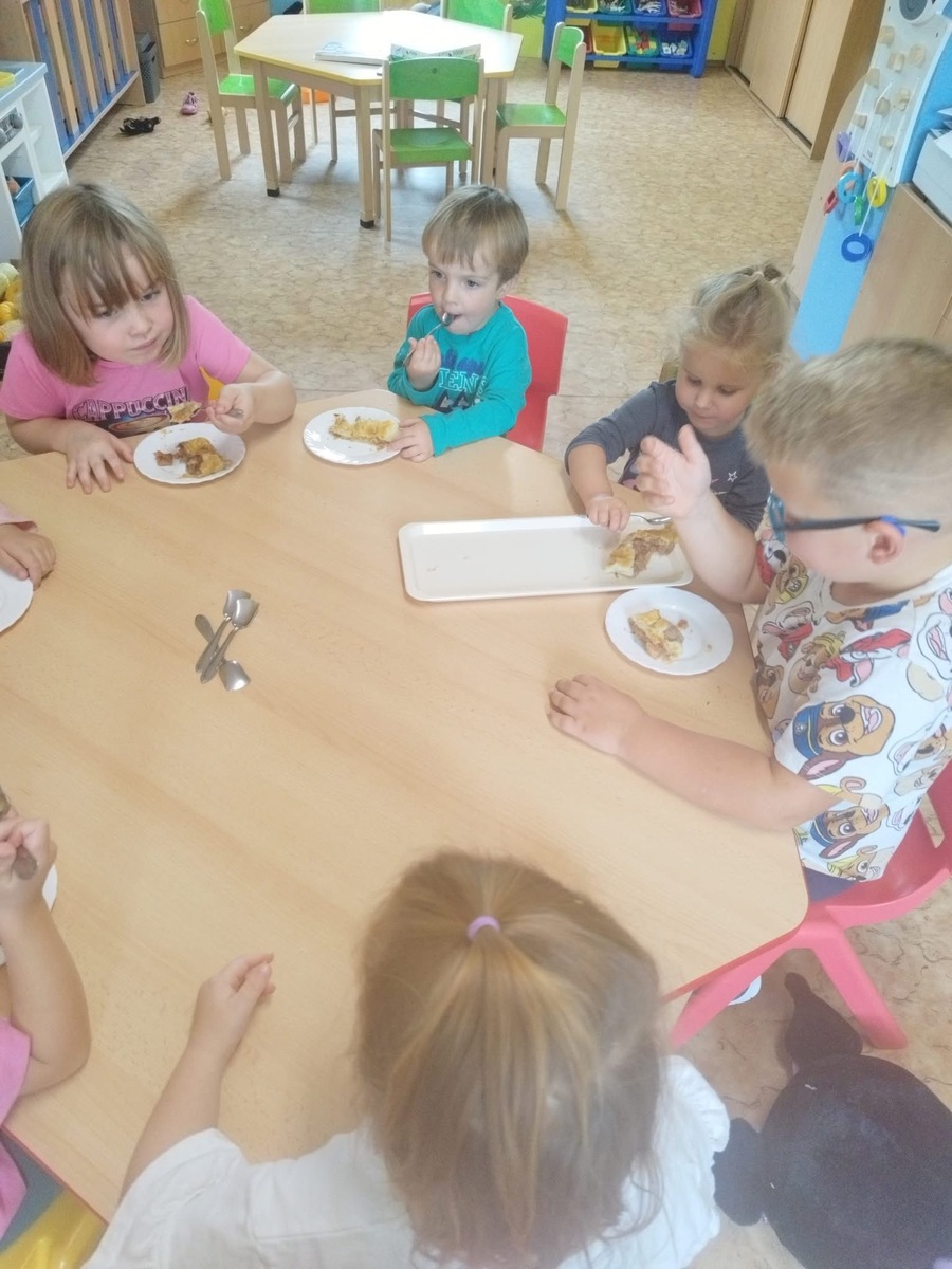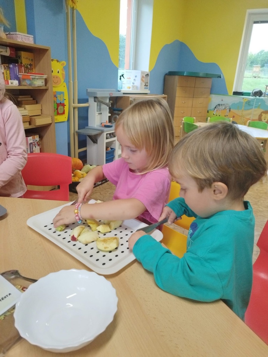 I u nás se pekl klasický "jablečný štrůdlík". Zapojily se úplně všechny děti- i ty nejmenší. Práce šla všem od ruky, protože už jsme zdatní pekaři a proto jsme na jablečné dobrotě pochutnali ještě před obídkem.
