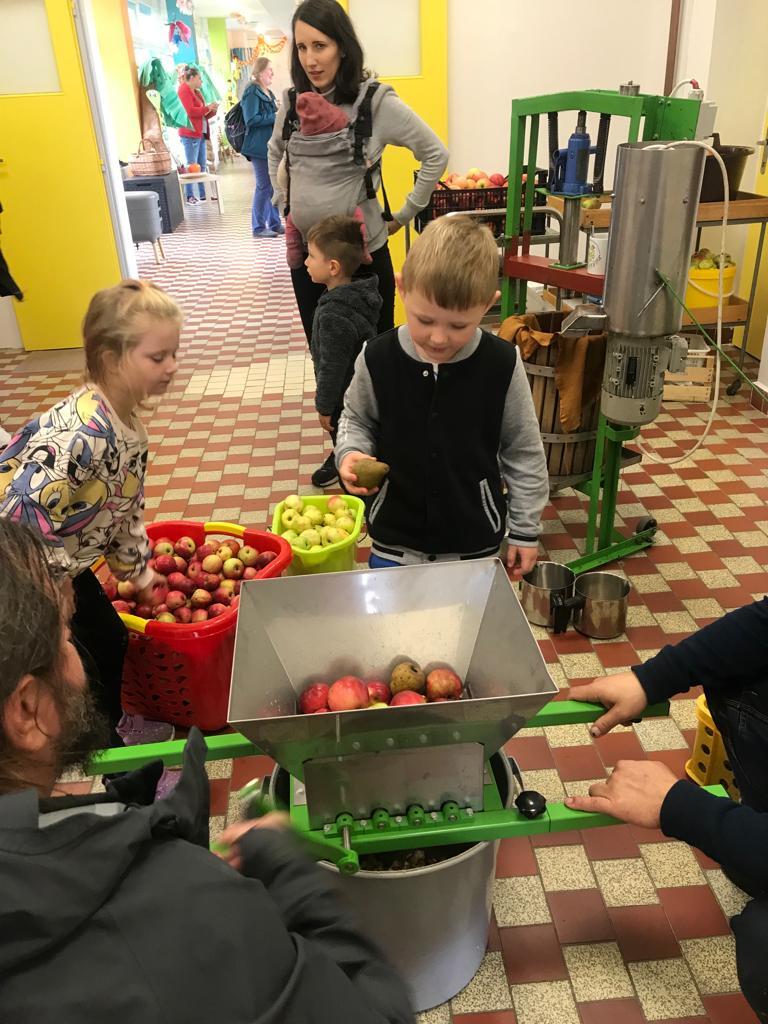 Já, ostřílená matka tří dětí úplně dokonale. Mohla bych mohla všechno TO těšení i nářky odříkat za své ratolesti. Tentokrát jsme se do školky chystali na Jablíčkování. Vyvázla jsem letos úspěšně ze soutěže o nejlepší jablečnou pochutinku pod záminkou, že jsme přece přinesli zahradnické výpěstky, které Michal Šatník zpracuje přímo na místě na mošt, a to je přece dobrota. Celá věc skončila několika kelímky a zjištěním, že čerstvý mošt je o dost lepší než burčák, který piju já. Moštování přímo na místě byl zážitek k nezaplacení. Mrňousové se snažili pomoct, a z doslechu vím, že i nejednomu tatínkovi se po dřině s ručním lisem výborně spalo. Jeden by neřekl, co legrace ho potká v mateřské školce.