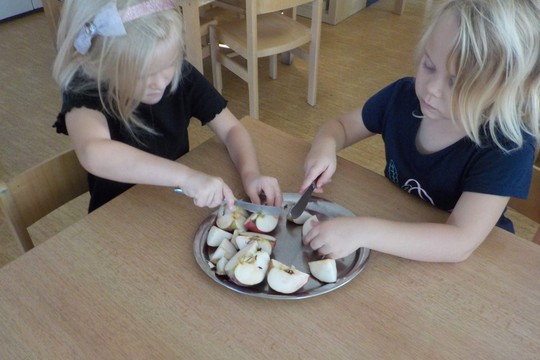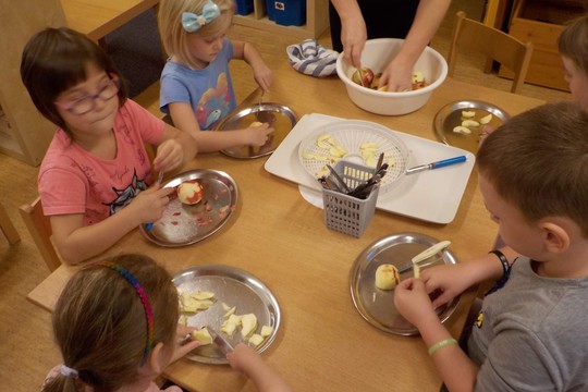 Naše jablůňka stále plodí spoustu jablíček a my jablíčka stále zpracováváme. Opadaná jablíčka si umyjeme, nakrájíme a na zahradě, kde je postupně pojídáme. Ale protože všechny nesníme, tak jablíčka krájíme a sušíme v sušičce. Křížaly uschováme na zimu, abychom i v zimě měli přísun vitamínů. Také jsme si udělali mošt. Omytá jablíčka, pořezaná na kousky, jsme dali do odšťavňovače a pozorovali, jak z nich vzniká krásná jablíčková šťáva. Takže „Na zdraví“.
