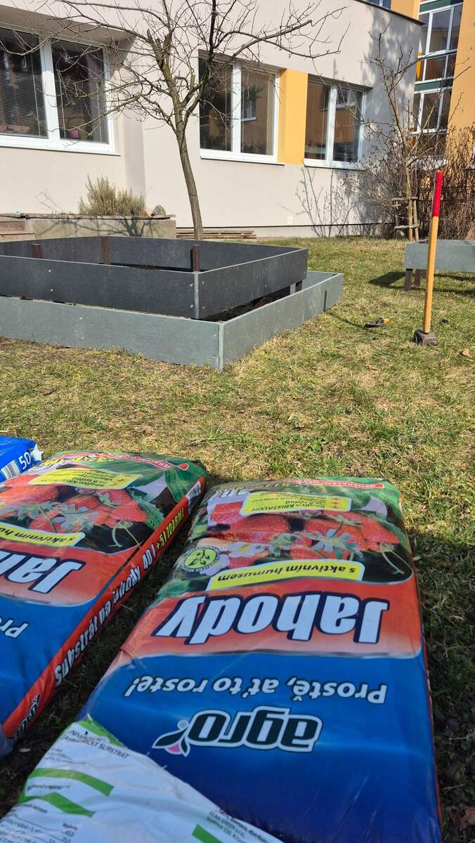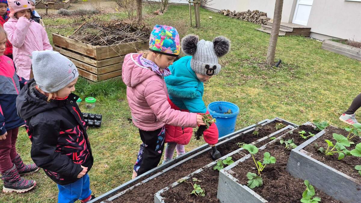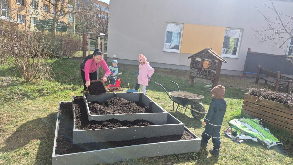 Zdravíme Vás všechny z naší školky Zahrádka a přejeme krásné jarní dny. U nás probíhají velké přípravy naší bylinkové zahrady a ovocného sadu. Většina ovocných keřů, malin a ostružin potřebovala jarní sestřih. A všem jsem dopřáli novou a kvalitní zeminu, kterou nám rodiče našich dětí darovali - děkujeme. V loňském roce jsme z projektu ,, Vím, co jím, maminko a tatínku!´´ zakoupili, z dotace našeho města Varnsdorf, velkou zahradní pyramidu. Jde o recyklát, který splňuje všechny podmínky k pěstování. Sami jsem si vypěstovali vlastní sazenice jahod a ty jsme teď s dětmi mohli nasázet. Je jich celkem 80, takže úroda by mohla být veliká.