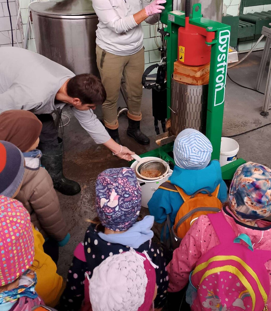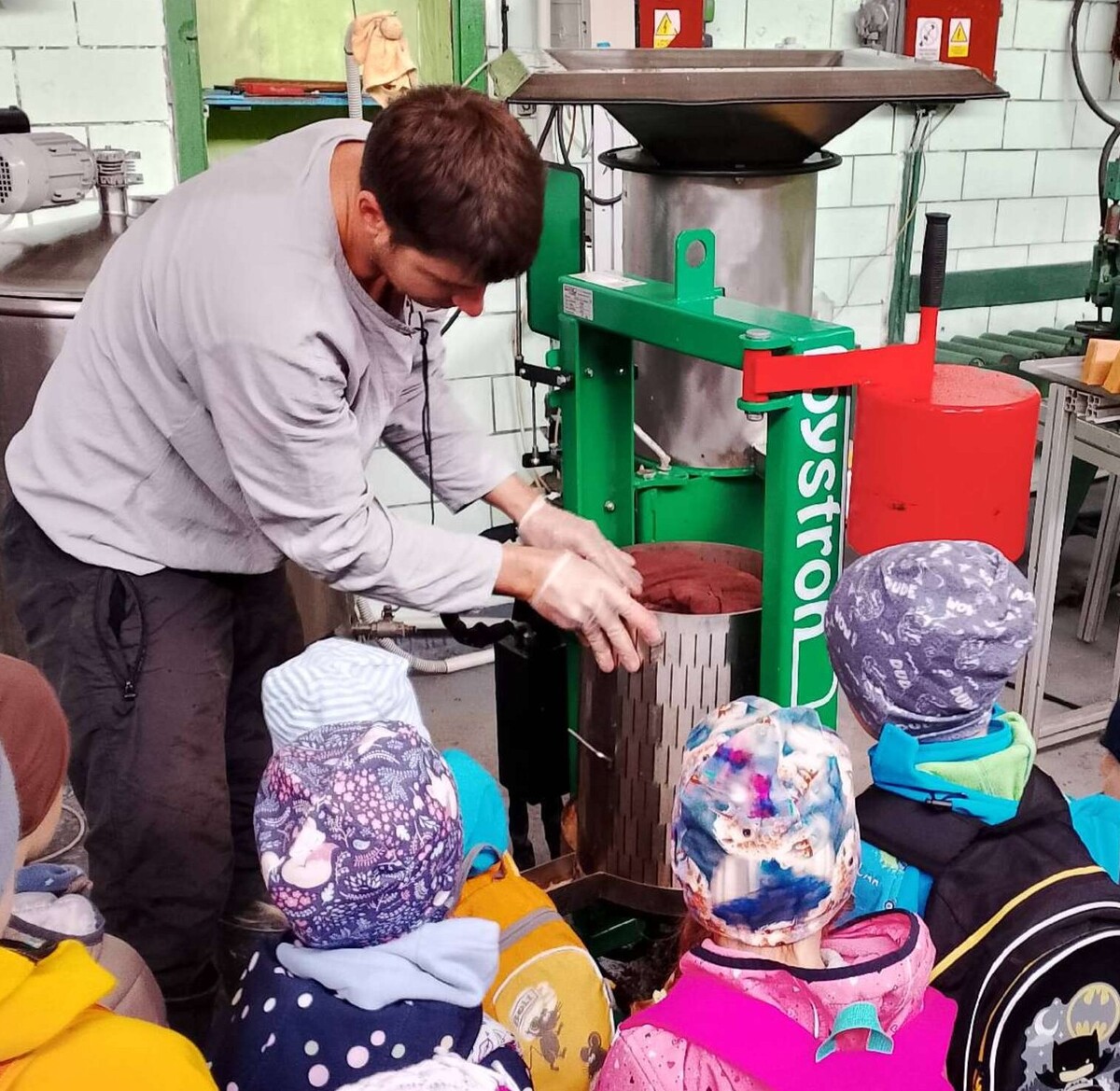 Děti ze školy navštívily moštárnu v Brandýse nad Labem, kde se dozvěděly, jak se z jablek vyrábí přírodní mošt bez přidaného cukru.