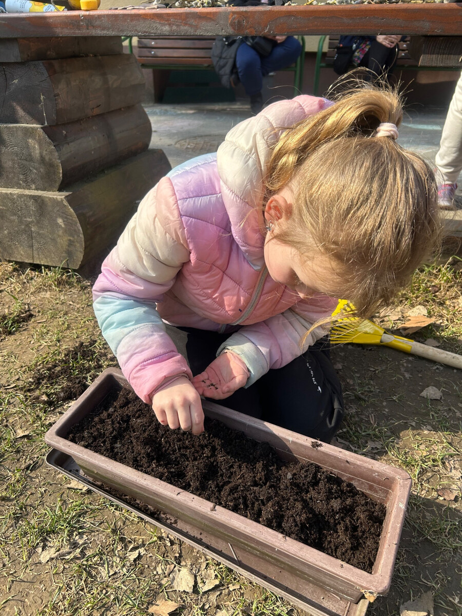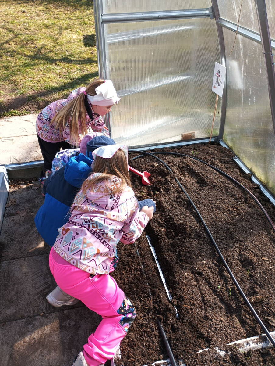 Jaro se nám letos přihlásilo velmi brzy, proto jsme s dětmi ze všech tříd nelenili a začali s pěstováním sazeniček ve skleníku i ve vyvýšených truhlících. Ve spolupráci s vedoucí školní jídelny jsme se domluvili, jaké druhy zeleniny naše paní kuchařky upotřebí v kuchyni nejvíce a podle toho jsme zvolili letošní výsadbu. Ve skleníku se nám proto začínají zelenat první polníčky, špenát nebo ředkvičky. Do vyvýšených truhlíků děti nasadily jarní cibuli, červenou řepu a česnek. Ve třídách se na okenních parapetech zatím vyhřívají papriky, rajčata a okurky. Díky každodenní péči o tyto rostlinky (zalévání, kypření, plevání) si už brzy budou děti pochutnávat na čerstvém zeleninovém salátu.