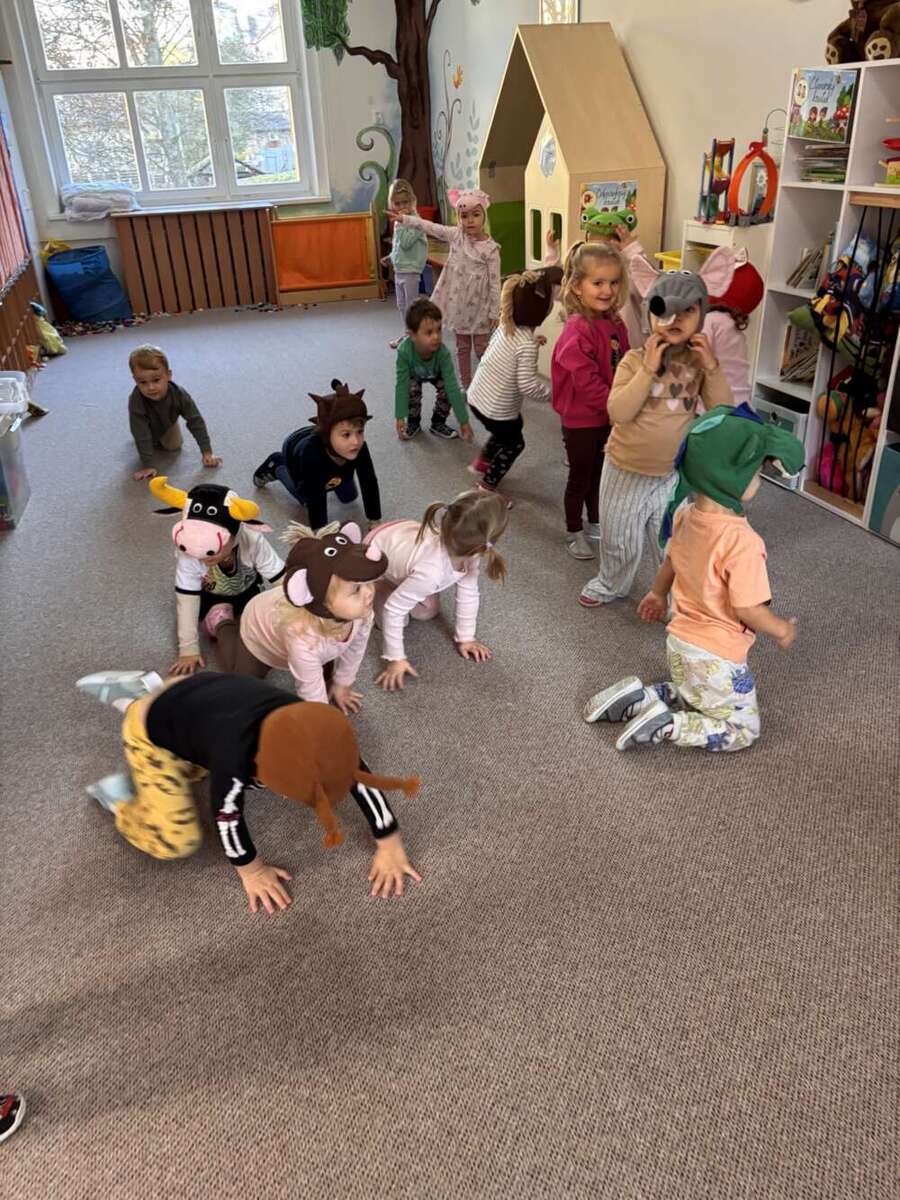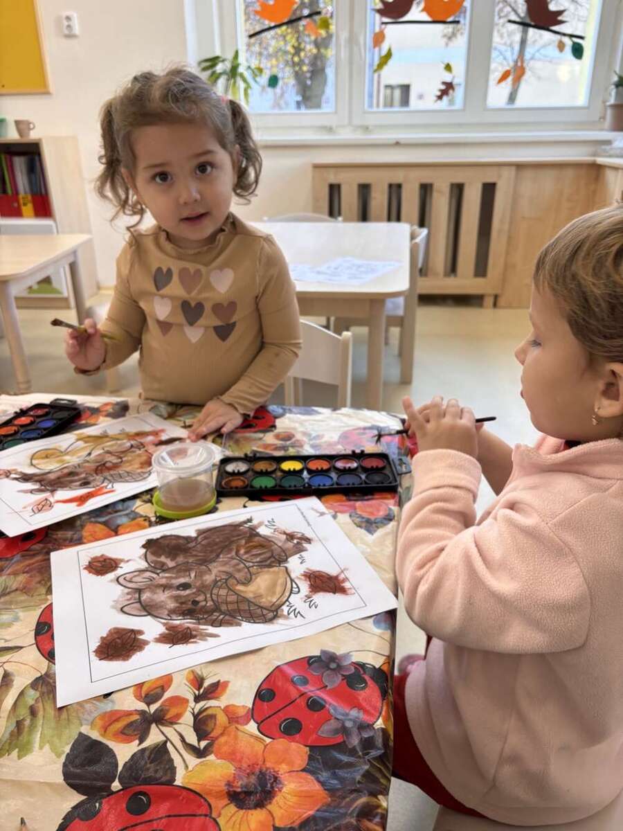 tento týden jsme měli téma „Jak šla zvířátka spát“. S dětmi jsme si povídali o tom, jak se lesní zvířátka připravují na zimu. Například jsme si zahráli na veverky a šli jsme do našeho minilesíka, kde jsme pozorovali opravdové veverky. Seznámili jsme se také s lesními zvířátky pomocí knihy Albi – poslouchali jsme jejich zvuky a dozvěděli se spoustu zajímavostí. Na okno jsme umístili průhledné krmítko pro ptáčky, děti do něj nasypaly krmení a teď budeme společně pozorovat, zda k nám ptáčci přiletí. Zahráli jsme si spoustu her na zvířátka, do kterých se děti s nadšením proměňovaly, a začali jsme tvořit lišku z papírového talíře. Děti si celý týden moc užily a byly velmi šikovné. ????️????