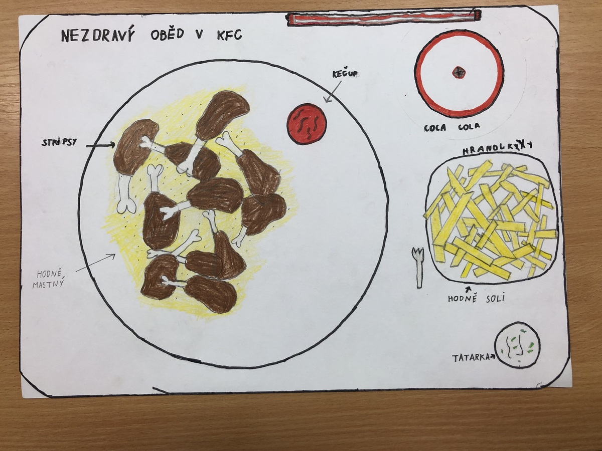 Jak by mohl vypadat zdravý oběd? Záleží na tom, jak jídlo uvaříme? Co nám prospívá a co nám škodí? Na tyto otázky se poukusili třeťáci odpovědět v prvouce. Svoje názory pak přenesli do kreseb zdravého a nezdravého oběda.