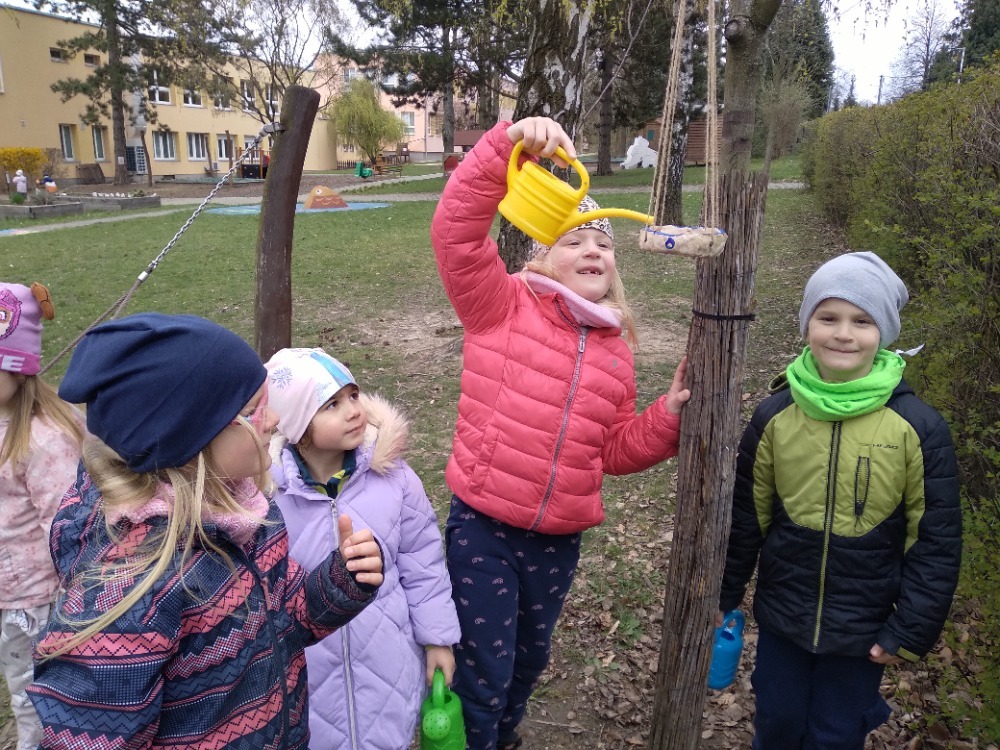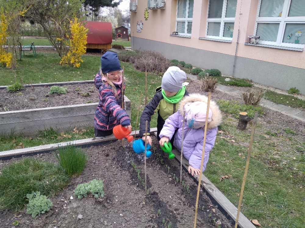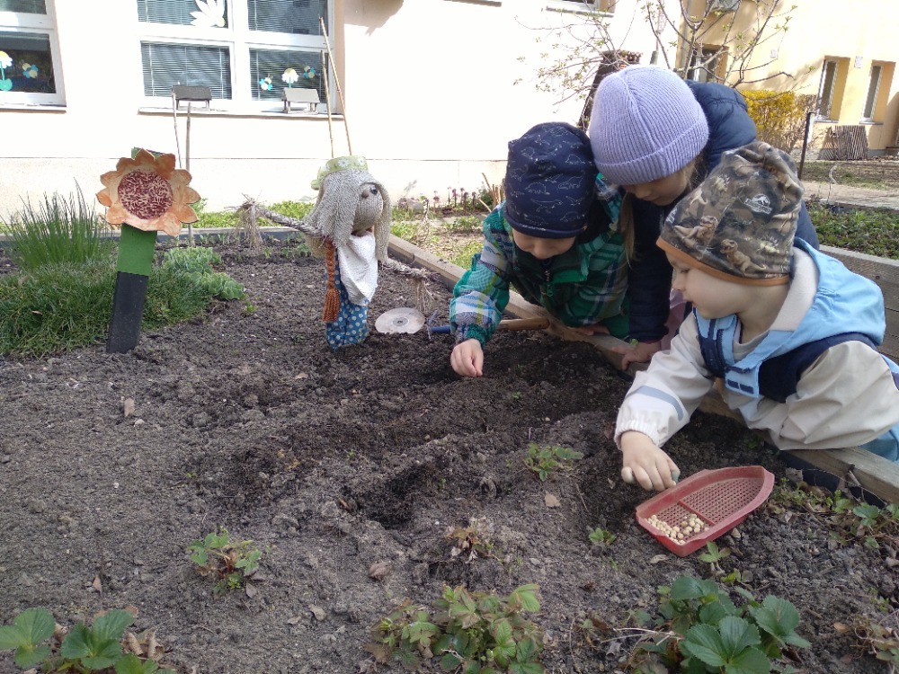 První jarní paprsky vylákaly děti a paní učitelky z naší mateřské školy k zahradním aktivitám. Děti vysazovaly semínka bylinek, hrášku, mrkve, čistily a okopávaly sazeničky jahod. Vše pečlivě zalévají a pozorují malé rostlinky v jejich růstu. Vysázely také cibuloviny květin, které v letních měsících přilákají motýly a včely. Snažíme se, aby na naší školní zahradě byla pestrá biodiverzita jak rostlin, tak živočichů, a proto vytváříme pestré a podnětné prostředí. Vzájemně při tom spolupracujeme a každá třída přiloží ruku k dílu. Děti z logopedické třídy vyrobily z keramické hlíny pítka pro ptáčky, motýly, včely, čmeláky. Děti z ekologických aktivit pítka nainstalovaly a budou pravidelně kontrolovat a dolévat vodu, sladký nektar a pokládat kousky přezrálého ovoce pro motýly. A tak se můžeme společně těšit nejen z bohaté úrody ale také z krásné zahrady plné rostlin a živočichů.