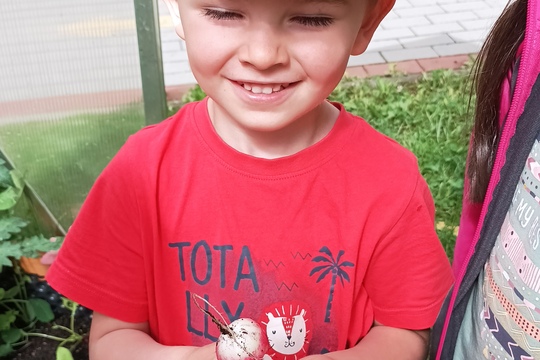 Děti z třídy Kuřátek zasely do skleníku semínka ředkviček a postupně začínají sklízet první úrodu vitamínů.