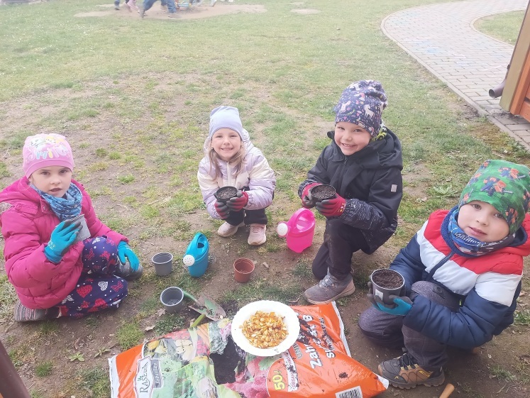 S příchodem jara a prvních teplejších slunečních paprsků si děti s paní učitelkami z Berušek zkrášlily exteriér svého pavilónu jarními květinami, za které moc děkujeme rodičům a vysazením semínek dýní, z kterých si až dýně dozrají, stejně jako loni, uvaříme něco zdravého.