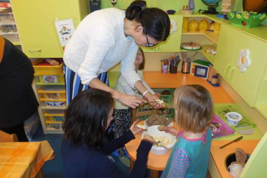 Děti se naučily připravovat zdravé mlsání, různé pomazánky a další pokrmy z vajec. Dne 16.4. 2019 byli pozváni do školky i rodiče, aby společně s dětmi vytvořili zdravé pohoštění.