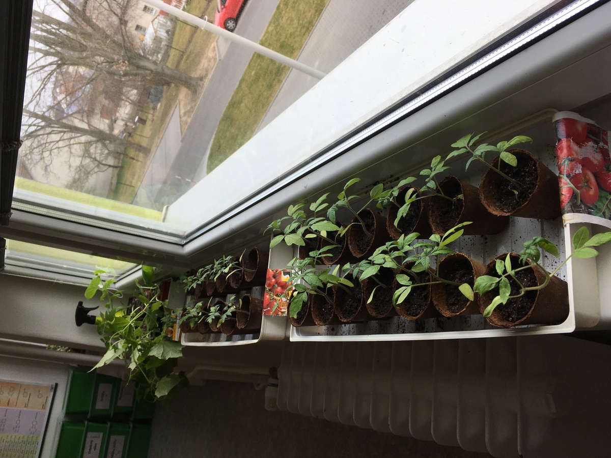 Ještě když se za okny proháněl sníh a foukal studený vítr, nám už ze semínek začaly klíčit první sazeničky rajčat a okurek. Nechali jsme je pořádně zesílit v malých pařeništích, abychom je, až přijde ten správný čas, přesadili do skleníku. Tam už se dnes zelenají v řádcích hezky srovnané ředkvičky, ke kterým brzy přisadíme salát a kedlubny. Všechny tyto rostlinky budou žáci v hodinách pracovních činností zalévat, až z nich nakonec vyroste chutná zelenina, na které si všichni pochutnáme v pokrmech školní jídelny. Tak hurá a s chutí do práce!