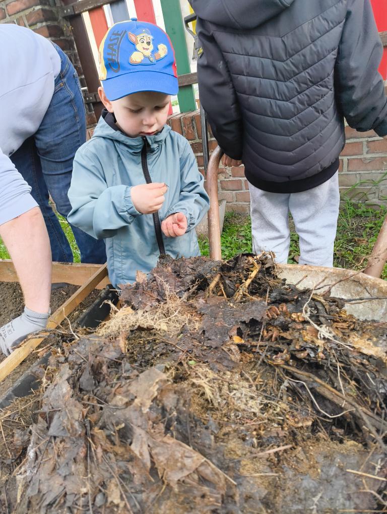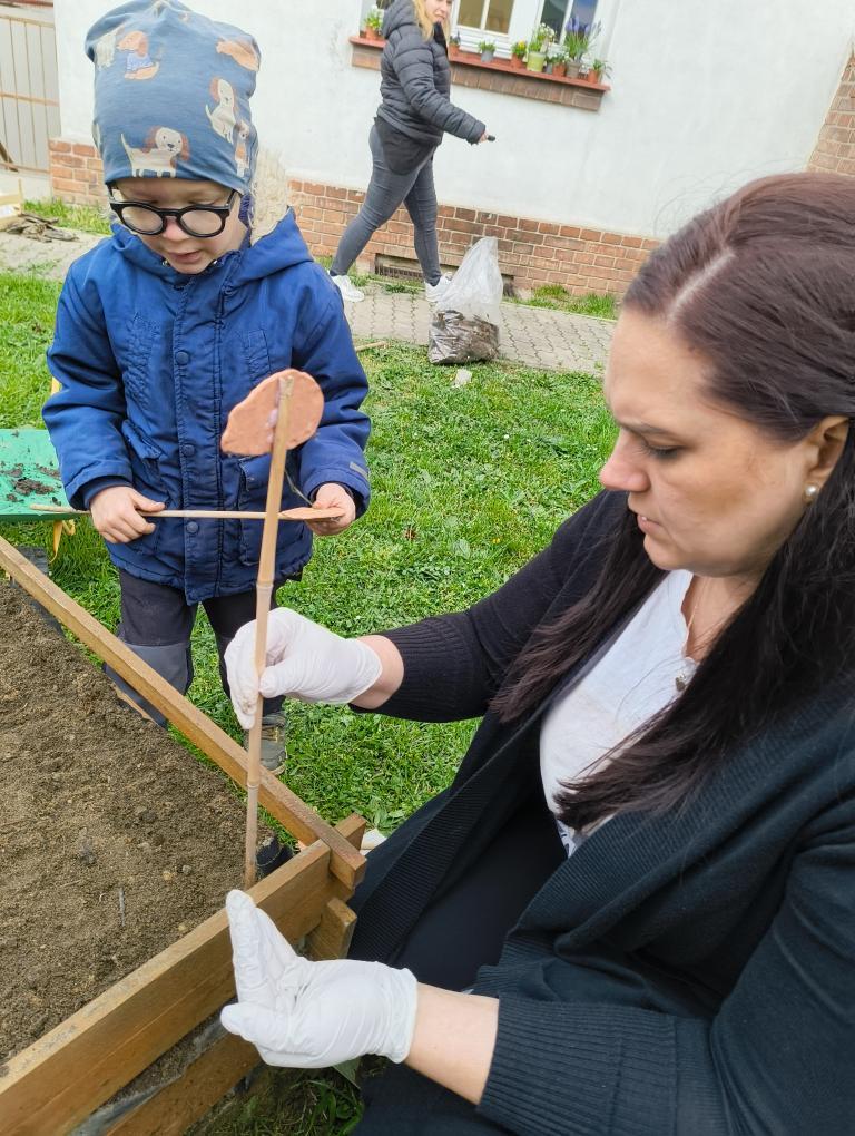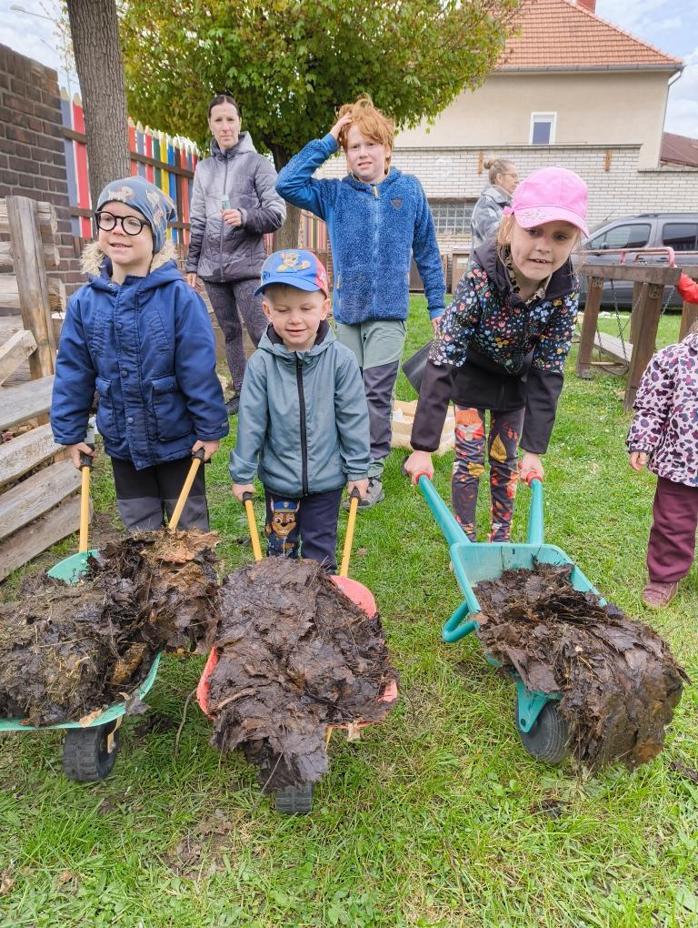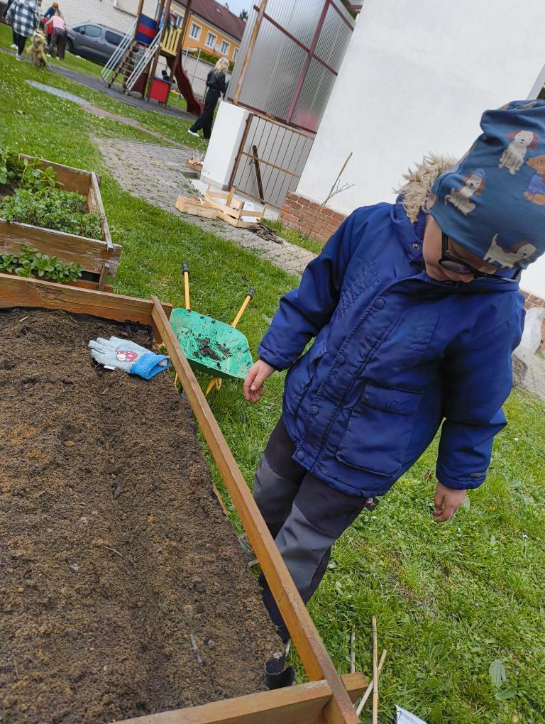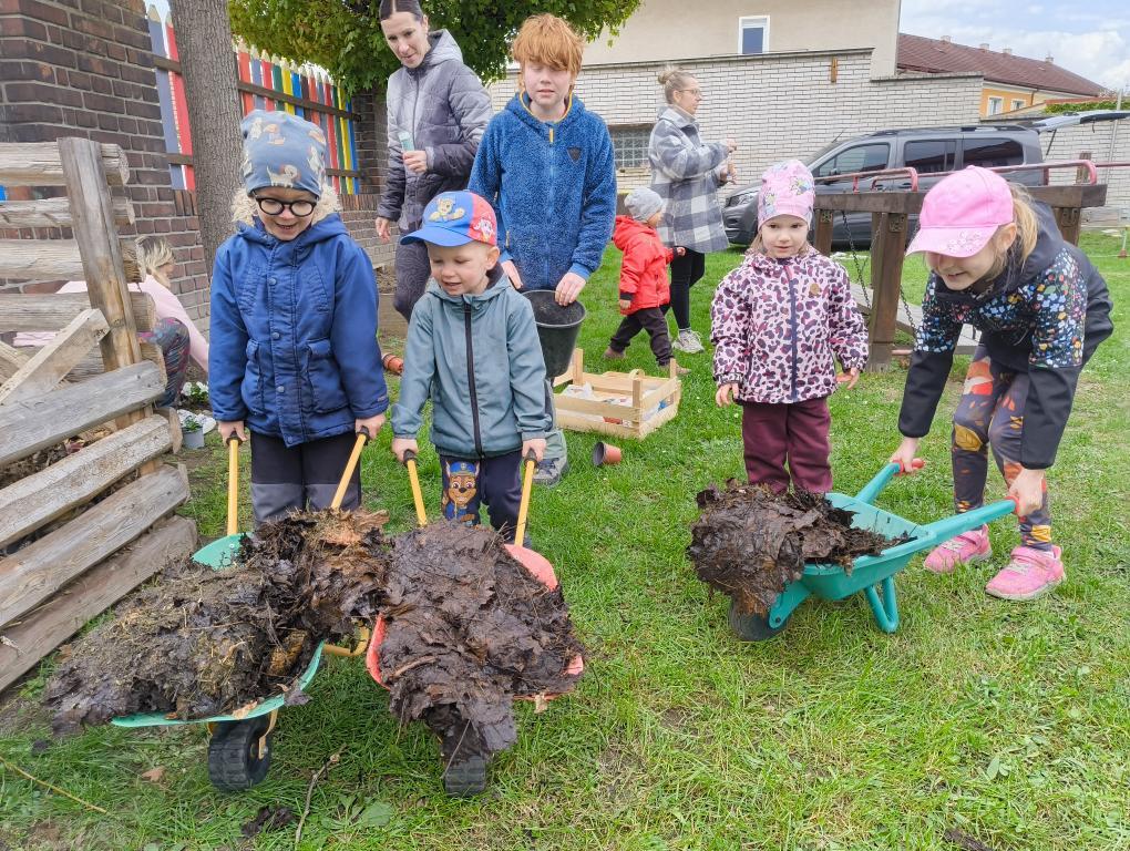 Založit se povedlo krásné KVĚTINOVÉ záhony, vyvozit kompost a připravit půdu na setí semínek ŠPENÁTU, HRÁŠKU, MRKVIČKY a zasadit CIBULKU. Podařilo se zasadit odkopek KŘENU, z čehož máme velkou radost