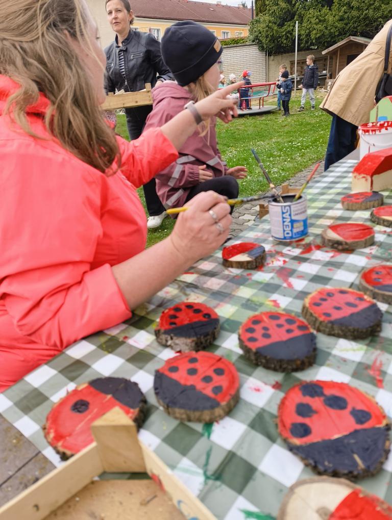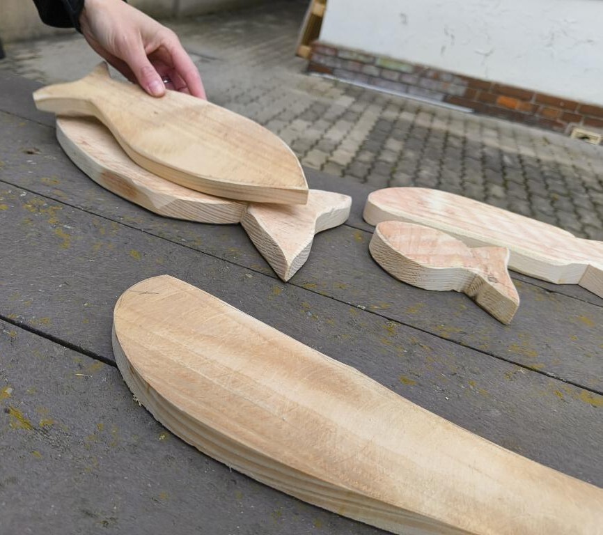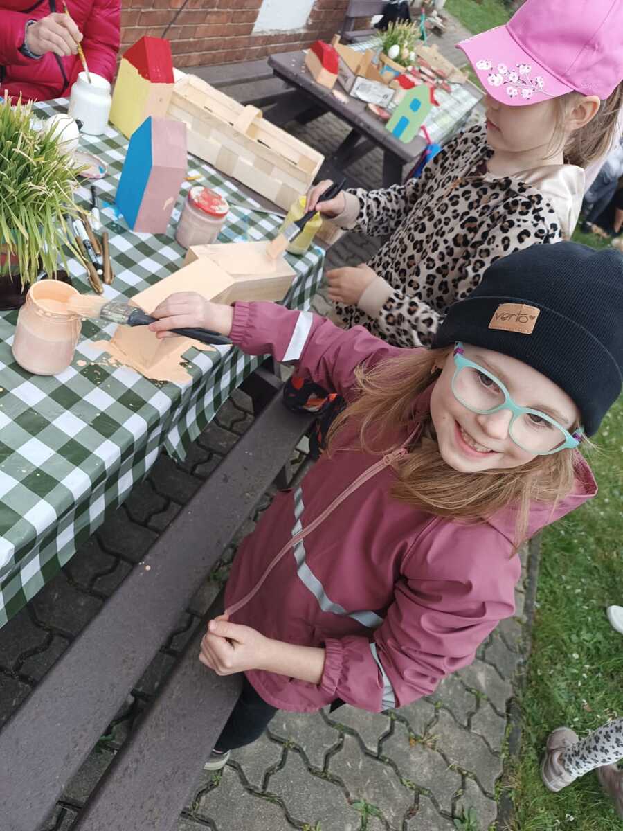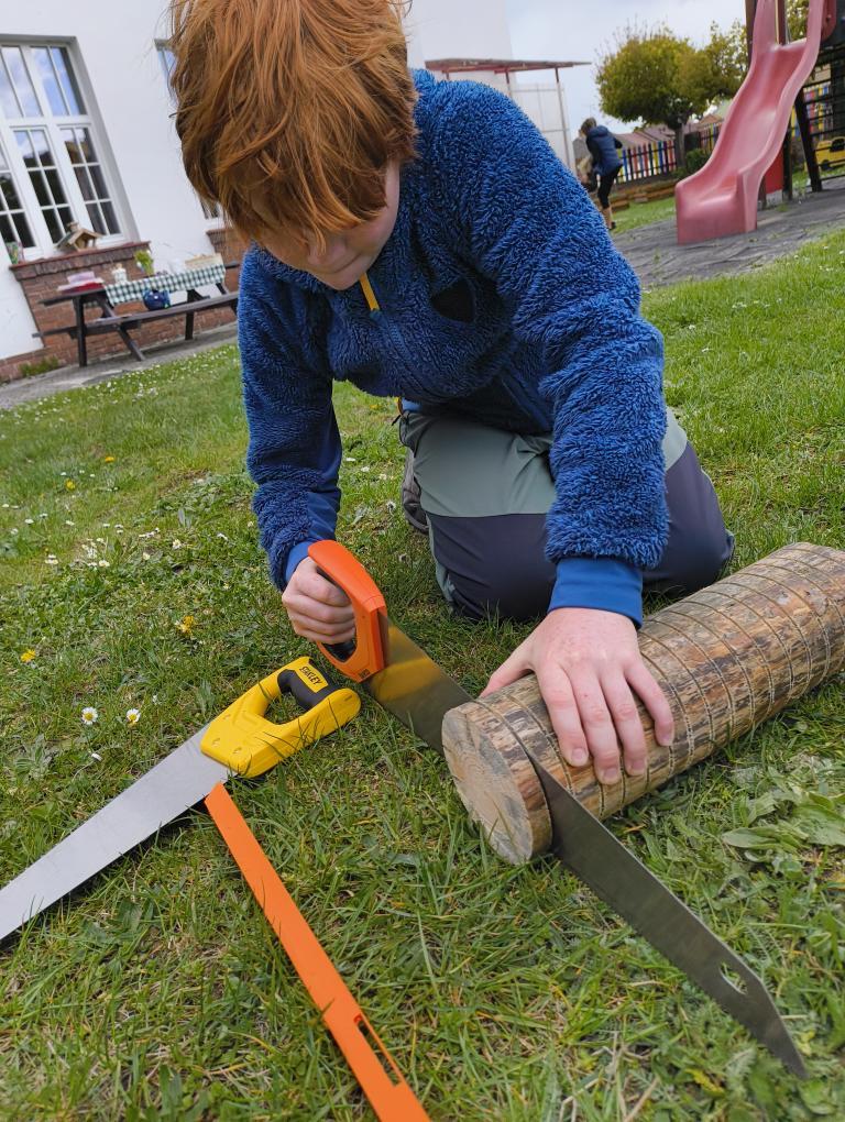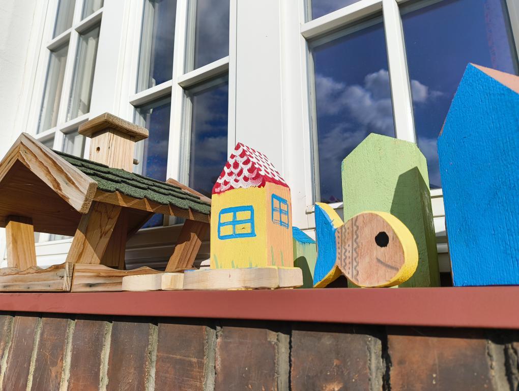 Při letošním odemykání zahrádky jsme si přály rozšířit prostor pro kreativní HRU na školní zahradě, založit SMYSLOVÝ chodníček, vyrobit DOMEČKY a DÝNĚ z dřevěných hranolů, vyřezat RYBIČKY z latí, které by děti zavěšovaly do sítě, beruškové DOMINO z dřevěných kulánků nebo SUDOKU na pařezu. Vytvořit pastelkovou TABULI na kreslení ze zbylých plotových latí a HUDEBNÍ pastelky, kde by děti mohly muzicírovat s nástroji, které jsme společně s nimi vyrobili. PASTELKY ještě doladíme a školkovou KOZÍ farmu založíme s dětmi