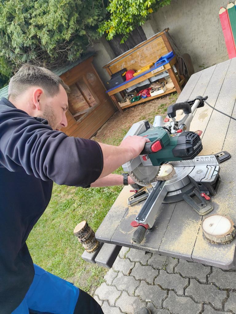 Tatínkovi Jonáška MARKA za jeho čas a velký kus práce, kdy se každý rok podílí na přípravách, řešení a realizaci nápadů na školní zahrádku, poskytnutý materiál a nářadí na řezání a opracování DŘEVA a zapojení celé rodiny.