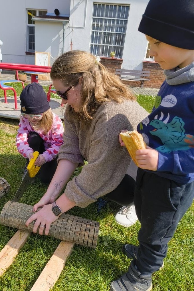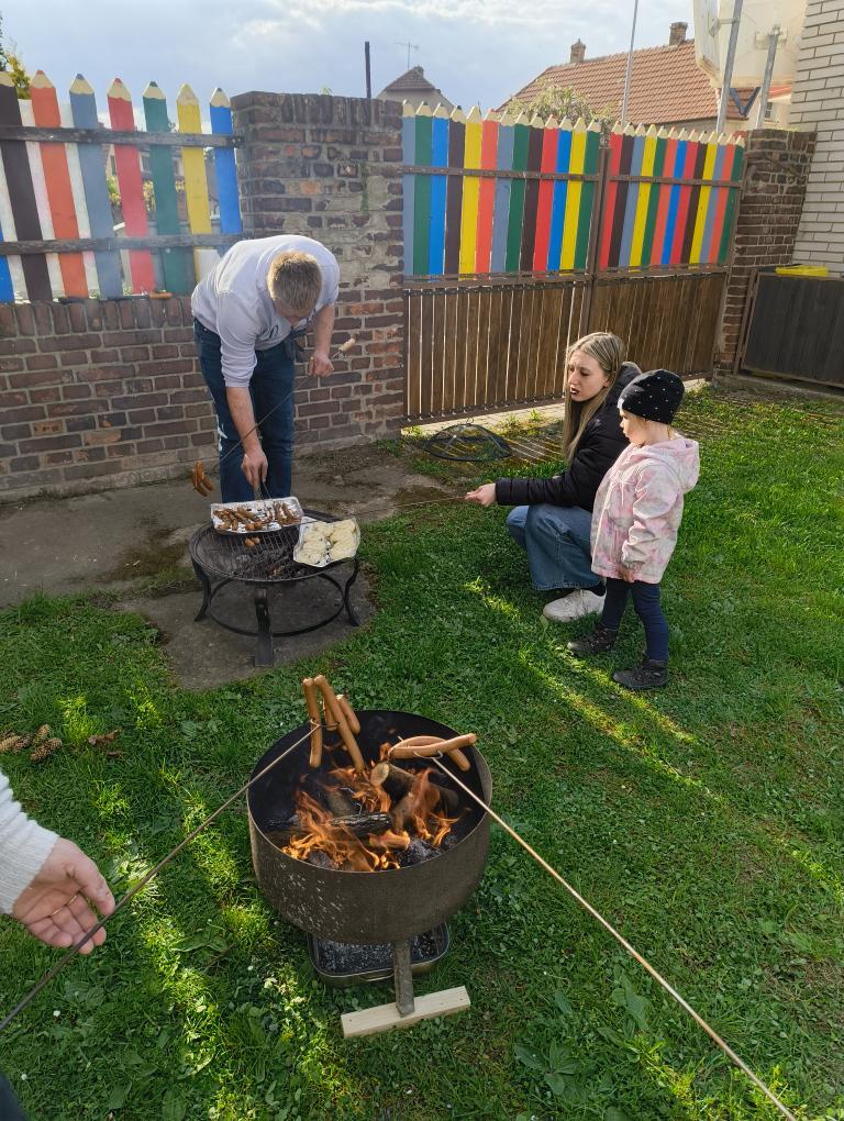 Děkujeme tatínkovi Stelinky ROSOVÉ za technickou podporu a velký kus práce, kterou je součástí našich aktivit na zahrádce, poskytl ohniště, vidlice a dřevo na opékání, zapůjčil nářadí.