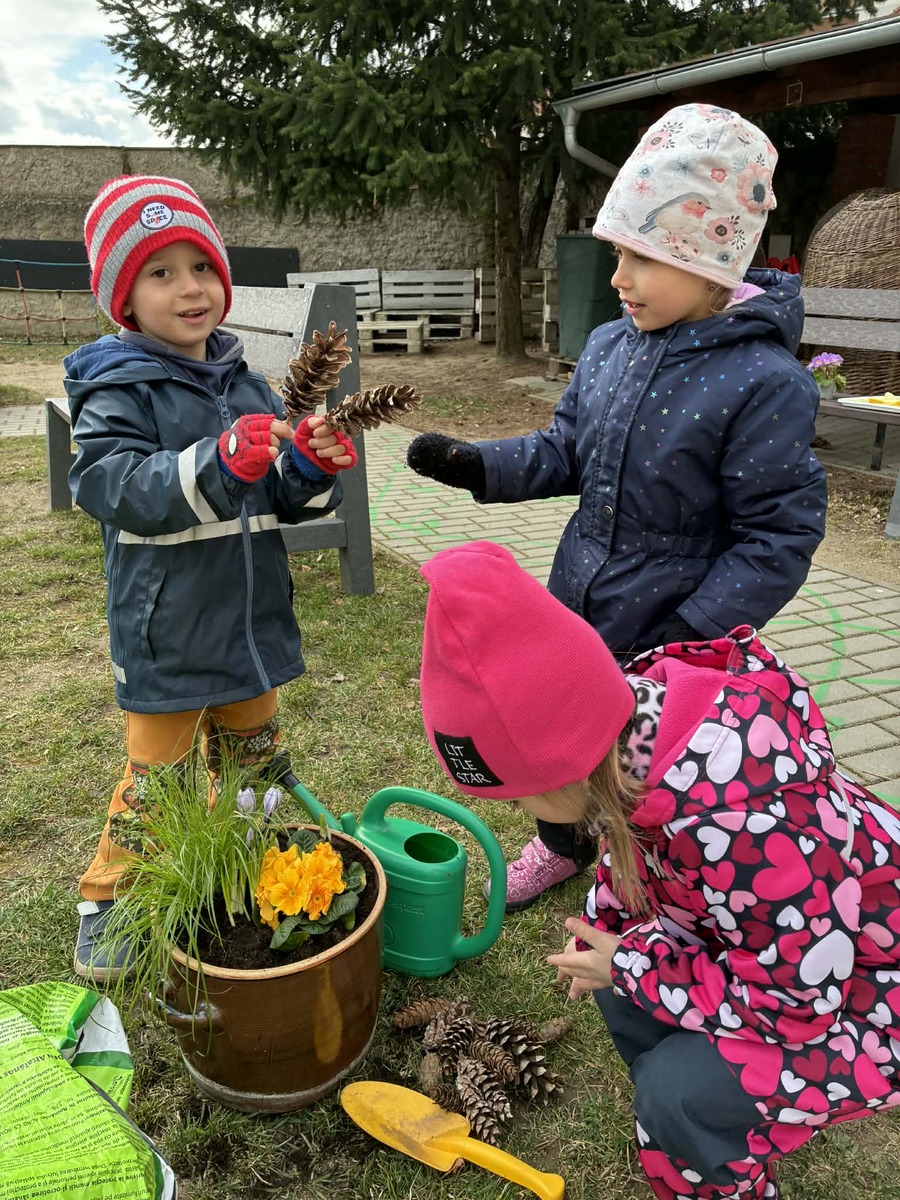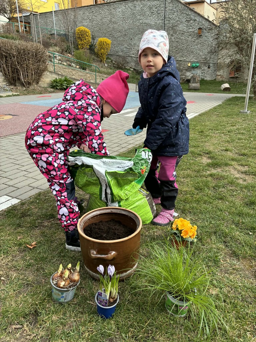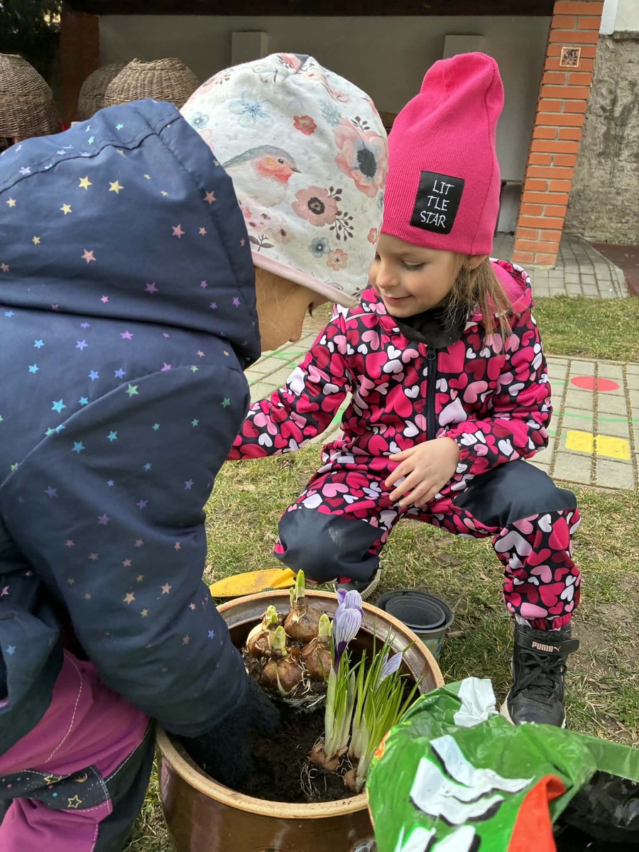 I když jaro ještě naplno nezačalo, pustili jsme se s dětmi do sázení jarních kytiček. Kytičky přinesla jedna z maminek a společně jsme je zasadili do truhlíku na naší zahrádce. Děti si vyzkoušely práci s hlínou, učily se, jak o rostliny pečovat, a s radostí sledovaly, jak si kousek jara můžeme vytvořit vlastníma rukama.