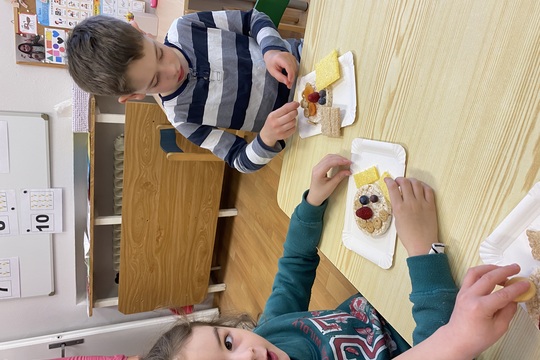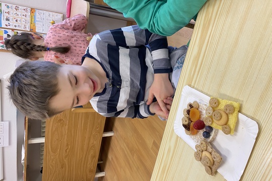 S našimi předškoláky jsme trénovali do školy na zápis, motivované Maxipsem Fíkem a tak nás s dětmi napadlo udělat si Maxipsa Fíka z kukuřičných, rýžových plátků, sušeného ovoce a čerstvých malin a borůvek. Byl moc dobrý.