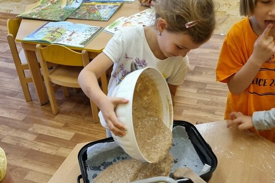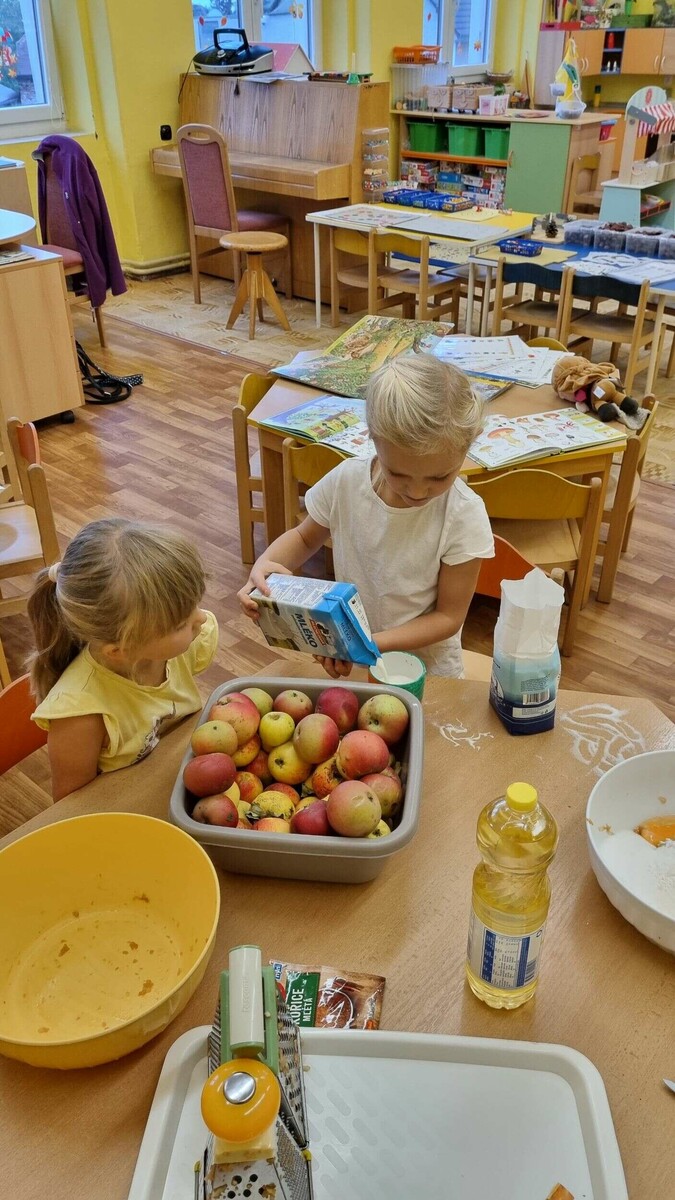 Ježečci z MŠ Soběchleby pečou buchtu z BIO jablíček