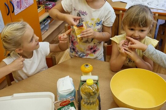 S dětmi jsme se společně na začátku týdne domluvili, že si opět upečeme něco dobrého. Přečetli jsme si jídelní lístek a zašli jsme za naší hodnou paní kuchařkou domluvit se na nákupu potřebných potravin a na dnu, kdy budeme moci péct.