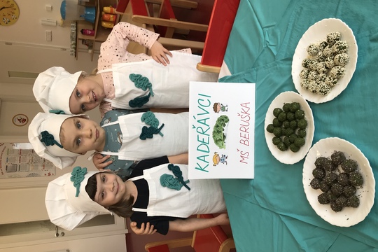 Naší supersvačinkou jsou energetické "Kadeřávkové Raw kuličky". Děti je připravily s medvědím česnekem, cibulkou, slunečnicovými semínky, kokosovým olejem a kapkou Tamari omáčky. Kuličky děti obalovaly v chia nebo sezamových semínkách. Zdravá svačinka se povedla a všem obdarovaným ve školce kuličky moc chutnaly. Všichni teď vědí z čeho získat energii, vitalitu, imunitu a chuť do práce!
