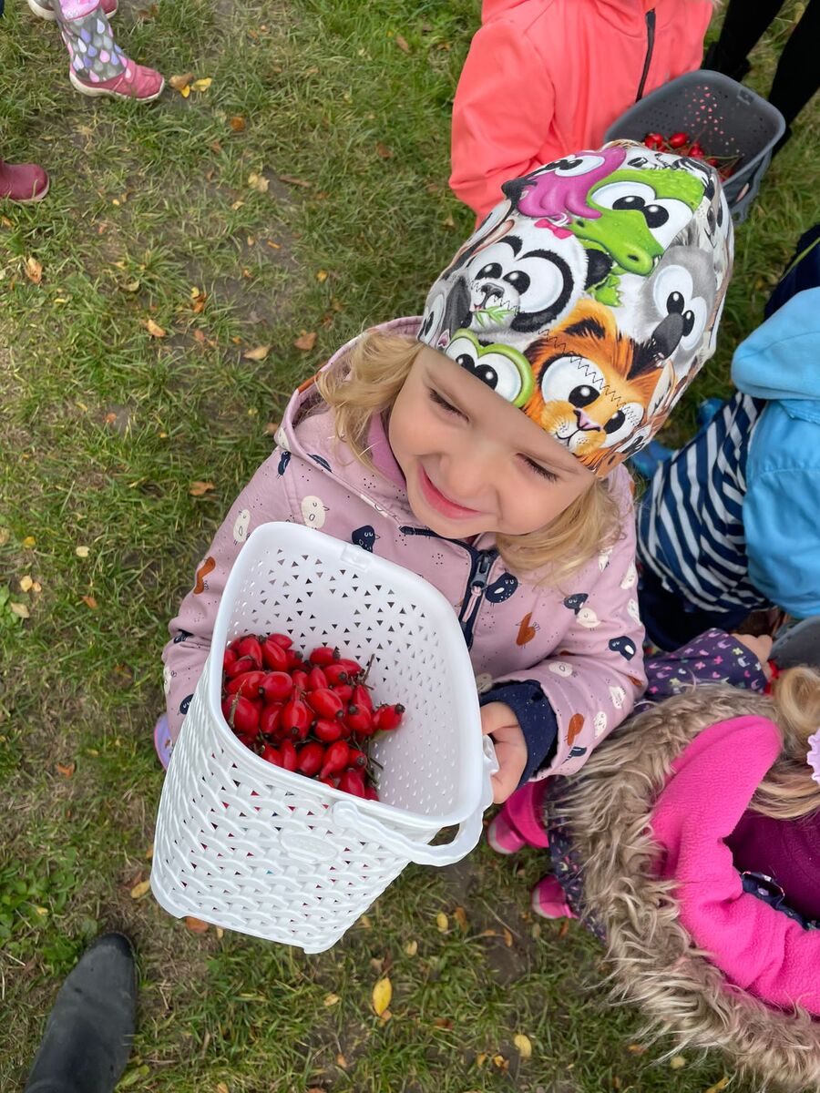 "Kančí - se šípkovou nebo se zelím"?? Znáte to strašné dilema, které automaticky naskakuje všem, co už někdy viděli film Slavnosti sněženek?? Naše školkové děti pravděpodobně tuto českou klasiku ještě neviděly, ale u nich by bylo rozhodnutí asi téměř jednoznačné...no, políčko s vlastním zelíčkem nemáme...ale šípků, těch máme dost a dost...a tak jsme je s dětmi očesaly a donesly paní kuchařce k dalšímu kulinaření. A byl z toho bájo obídek.