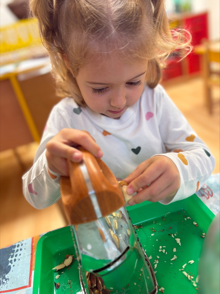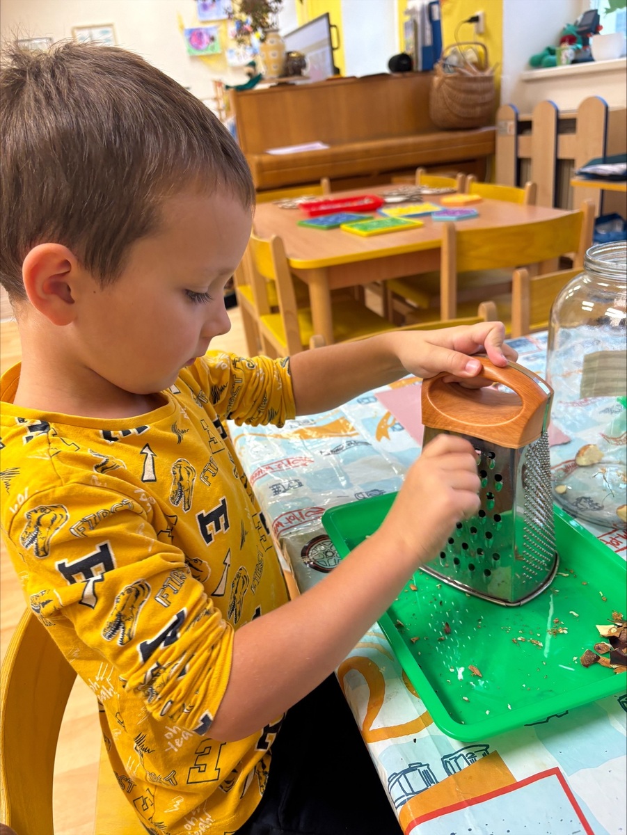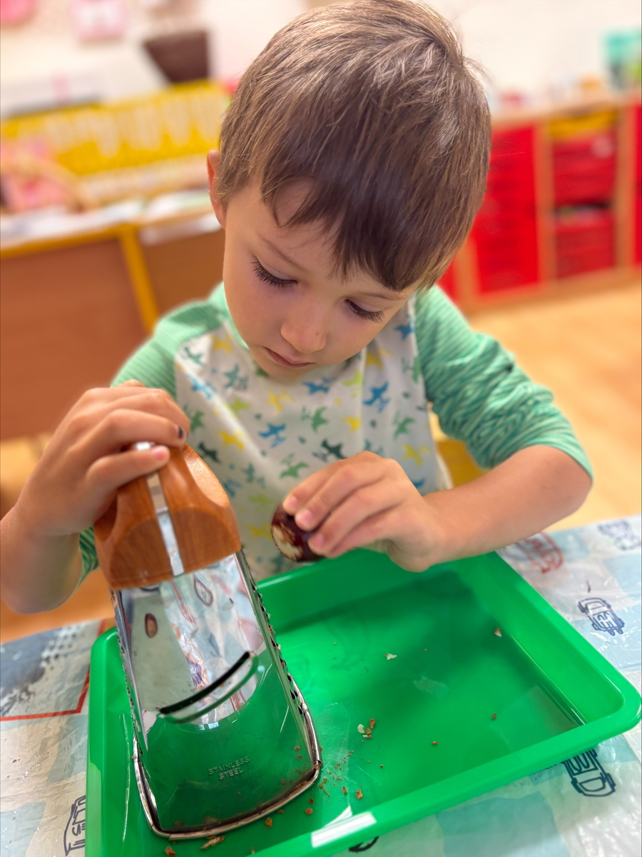 Děti si vyzkoušely, jak se dají kaštany využít jinak než na hraní. Kaštany loupaly, krájely a strouhaly na malé kousky. Potom je zalily vodou a čekaly, až se z nich uvolní přírodní „mýdlo“. Voda se zakalila a začala pěnit – kaštany totiž obsahují saponiny, které umí čistit.