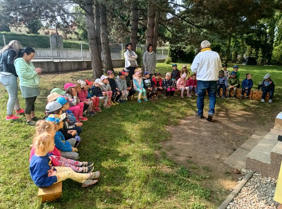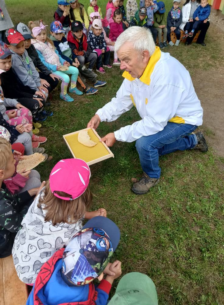Děti v mateřské škole dnes navštívil pan Vala. Jako by přišel z pohádky, když dětem vyprávěl o tom, jak to funguje u včel v úlu a jak se o včely musí člověk starat. Děti ochutnaly sladkou lžičku medu, vyzkoušely si včelařskou kuklu i dýmák. Prozkoumaly také včelí plástve a úžasné včelárium.
