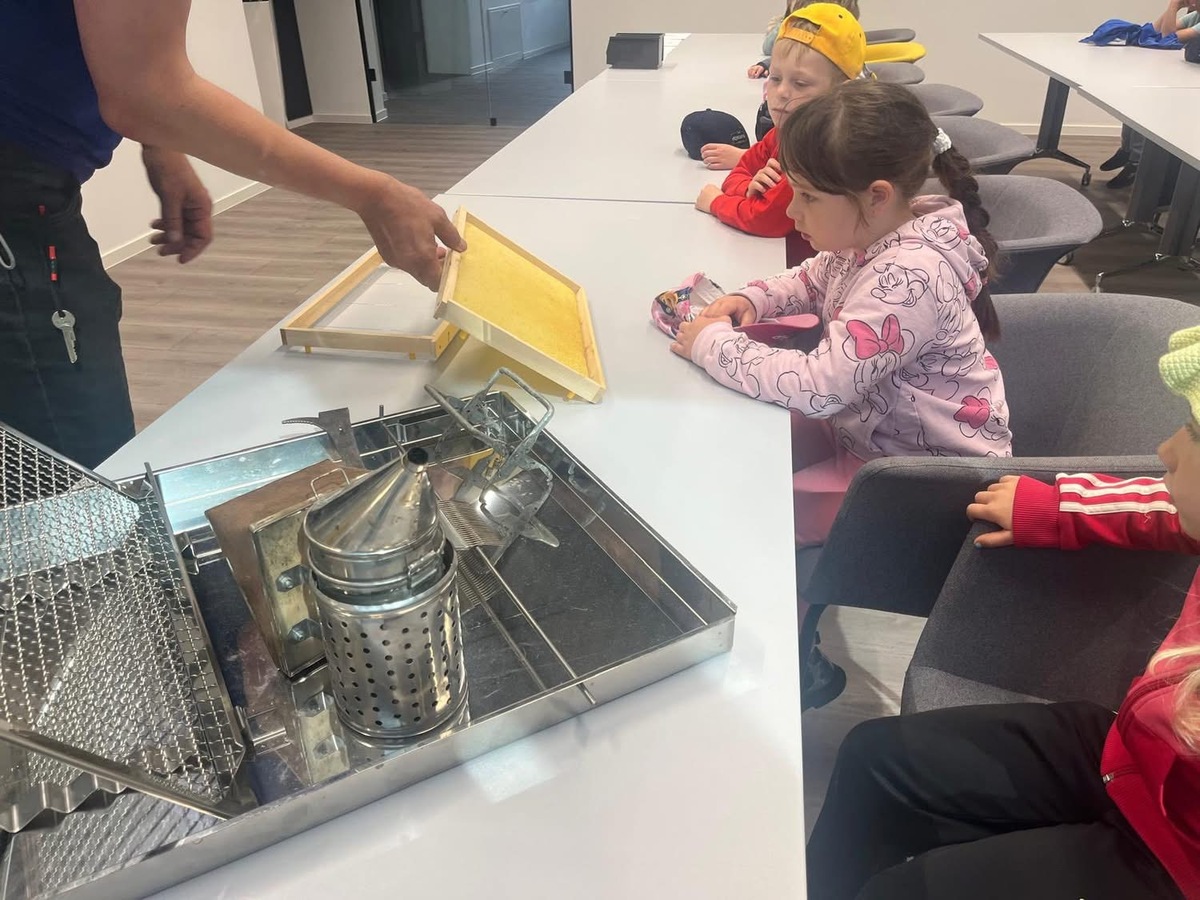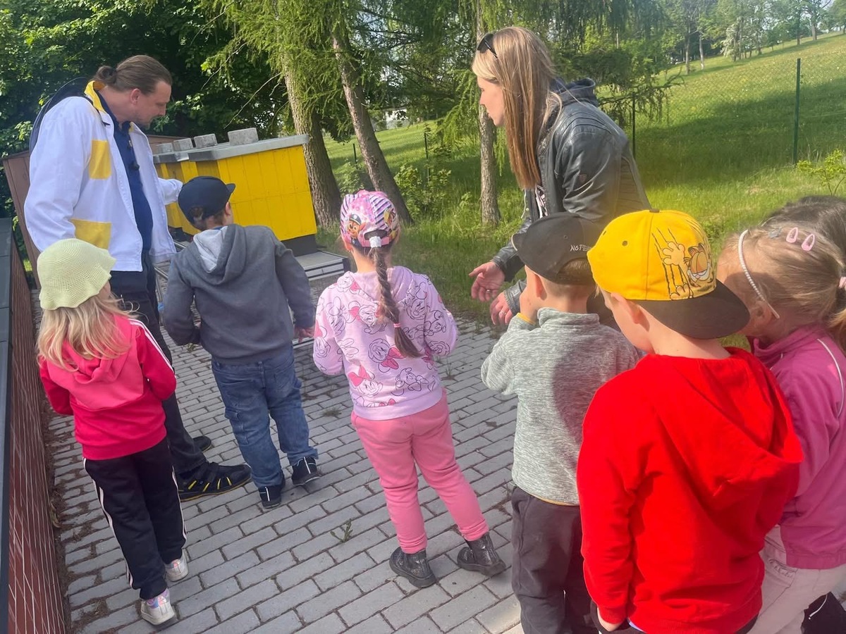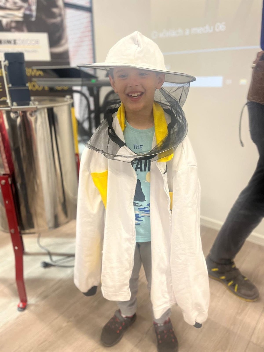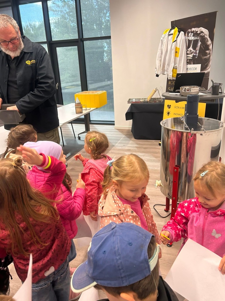 S dětmi jsme navšívili firmu Heinz Glass decor, kde se věnují včelaření. Dětem ukázali. kde takové včelky žijí, jak se o ně musíme starat, jak jsou pro lidksý život důlležitý. Děti si také mohly obléknout ochraný oblek, na památku dostaly dárek vpodobě včelky z 3D tiskárny.