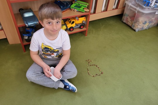 Povídali jsme si o semínkách, pozorovali je, hráli si s nimi. Několik semínek fazolí jsme dali vyklíčit do sklenice a pozorovali, co se stane.