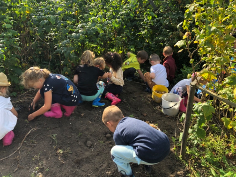 Děti se nejprve dozvěděly, z čeho brambora vyroste, že to není ze semínka, jak myslely. A pak už se pustily do hledání pokladů - kopání brambor. Radost z každé nalezené byla úžasná - a že jich bylo???? Potom jsme brambory roztřídili, dozvěděli jsme se, na co se které používají a za odměnu jsme si pochutnali na mochyni - tu děti většinou doposud neznaly.