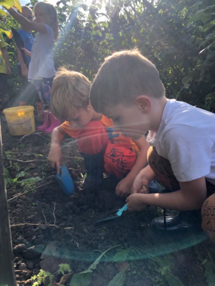 Ještě jsme si prohlédli křepelky a dozrávající dýně a s výslužkou poctivě nalezených brambor jsme se vydali na cestu do školky.