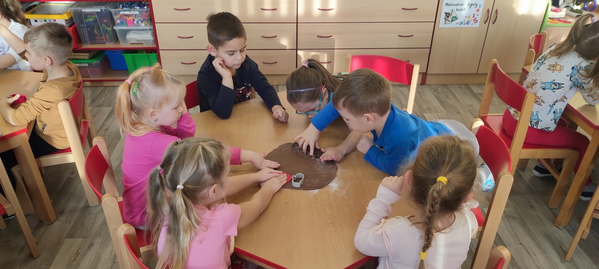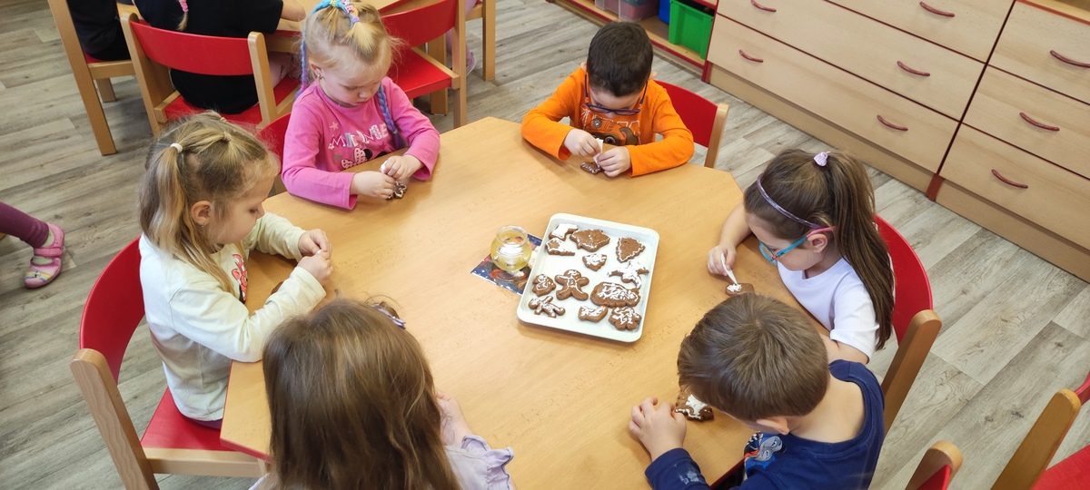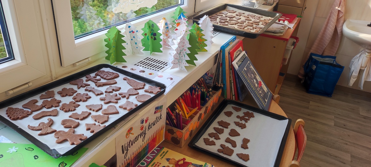 Děti ze třídy Koťátek si vykrajovaly vánoční perníčky, které si následující den samostatně ozdobily.