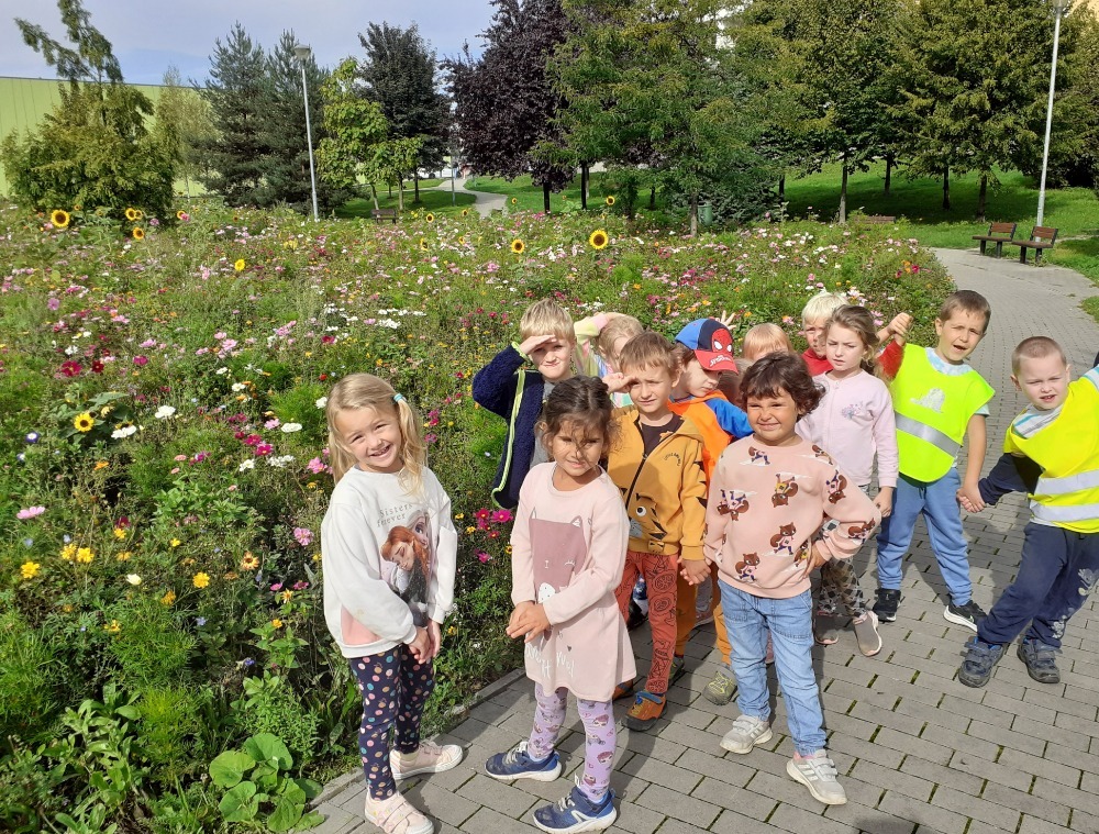 Na vycházce do okolí naší mateřské školy jsme s dětmi objevili pestrou květinovou louku.