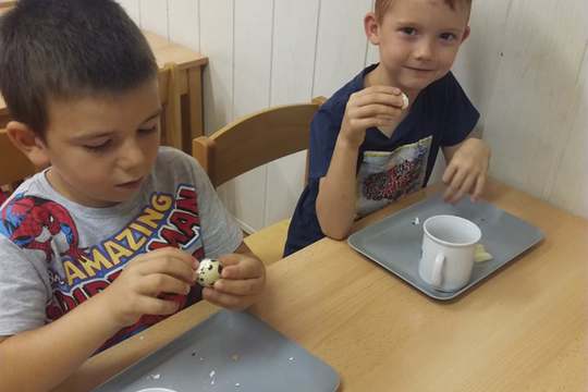 Od Klárky měli dnes krtečci ke svačince křepelčí vajíčka????. Moc se jim líbil rozdíl v barevnosti a velikosti vajec. Ukázali si fotky křepelky a slepičky a porovnávali rozdíl.