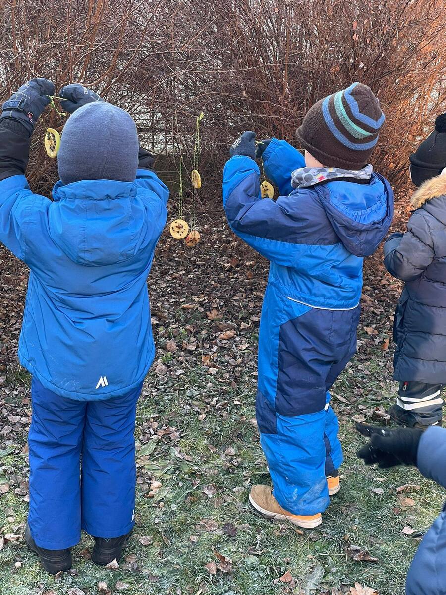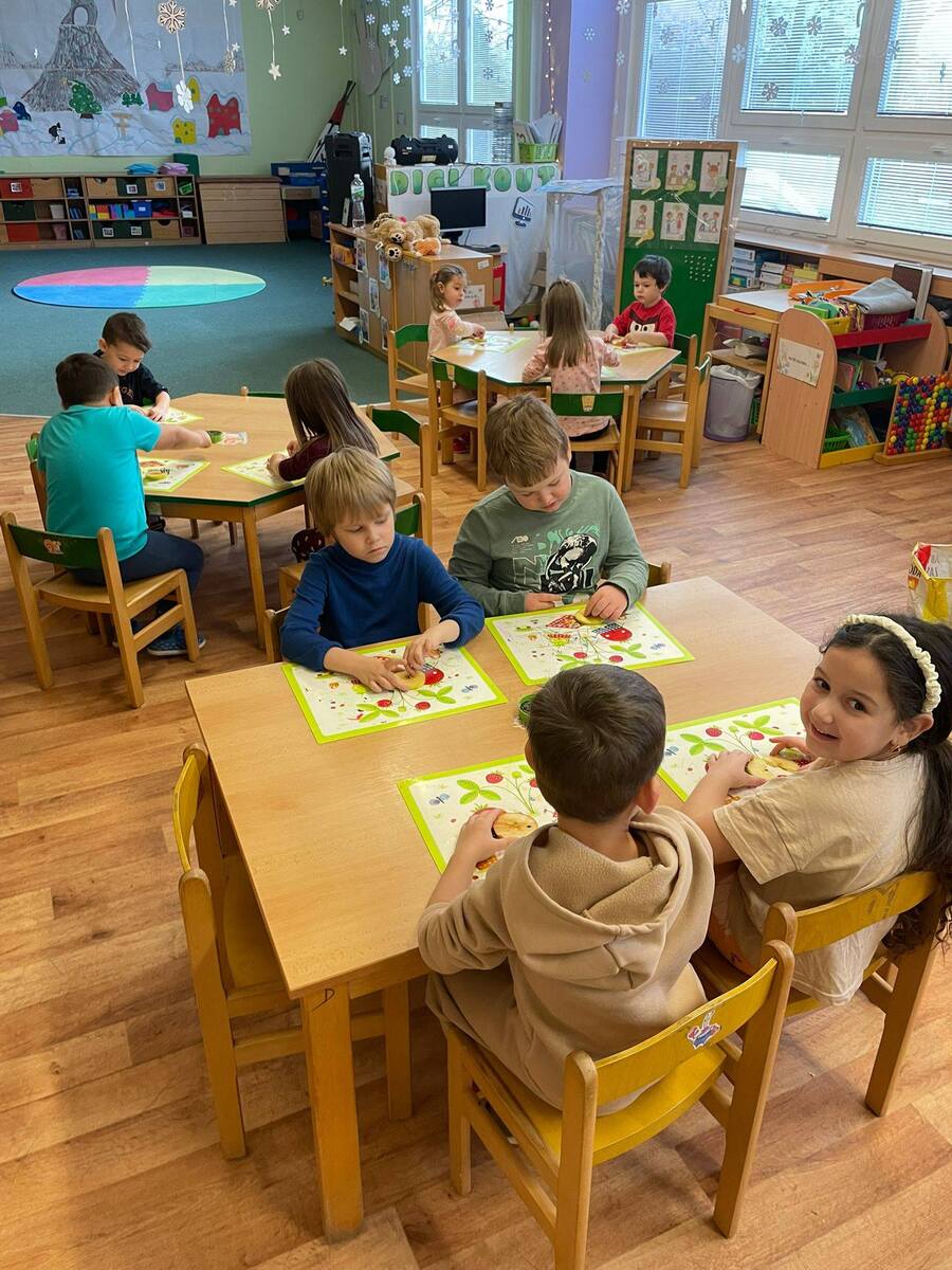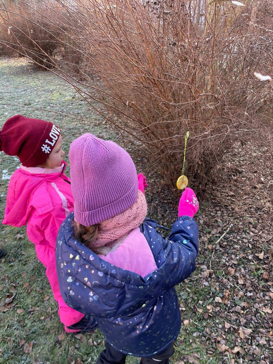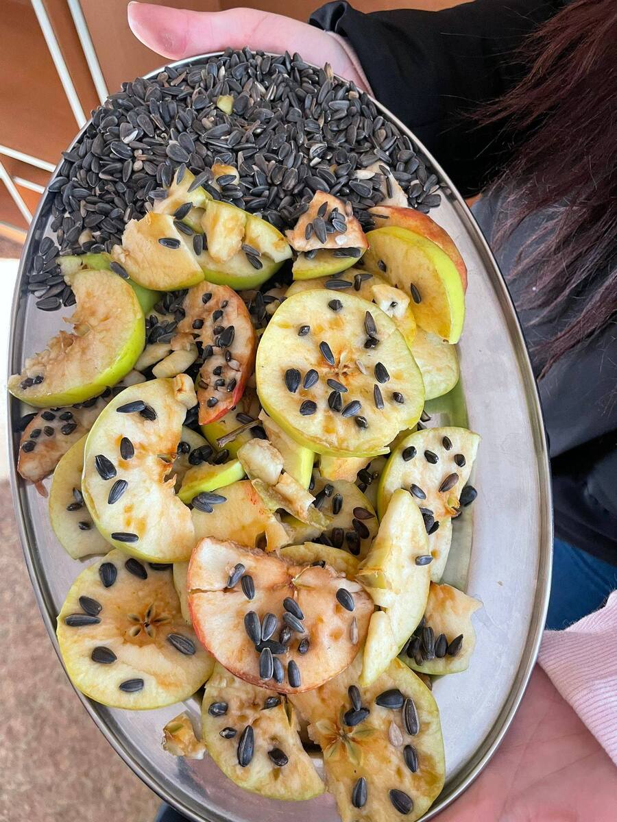 Na Duháčku si paní učitelky s dětmi užili krásné tvoření Z plátků jablíček vyrobili krmení pro ptáčky – děti do nich zapichovaly zrníčka a moc je to bavilo. Hotová jablíčka pak šli společně pověsit na zahrádku. Zbylá jablíčka a zrní nasypali do krmítka
