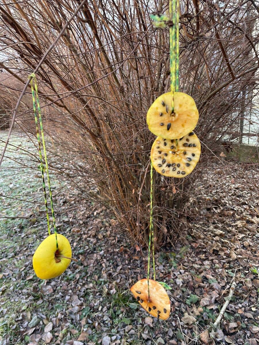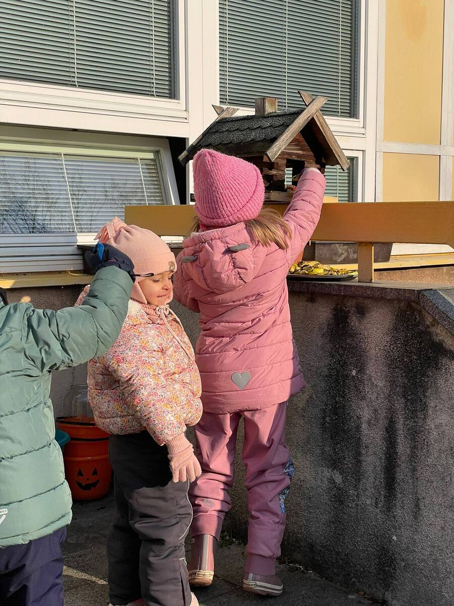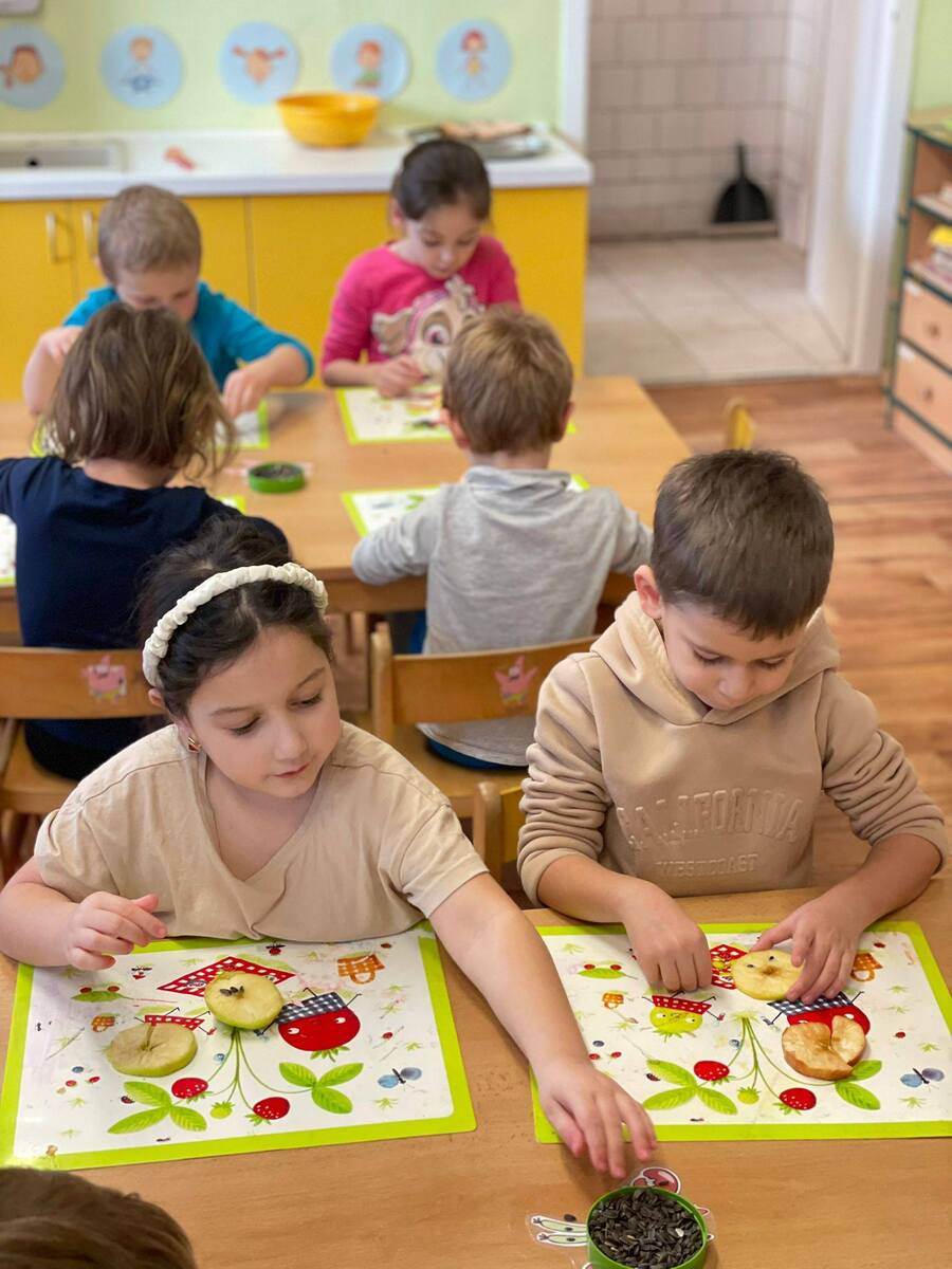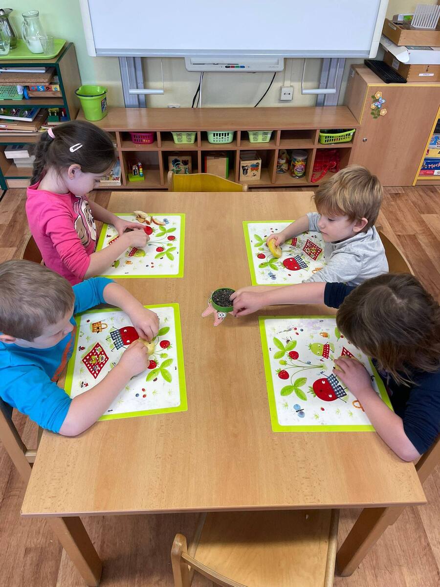 Na Duháčku si paní učitelky s dětmi užili krásné tvoření Z plátků jablíček vyrobili krmení pro ptáčky – děti do nich zapichovaly zrníčka a moc je to bavilo. Hotová jablíčka pak šli společně pověsit na zahrádku. Zbylá jablíčka a zrní nasypali do krmítka