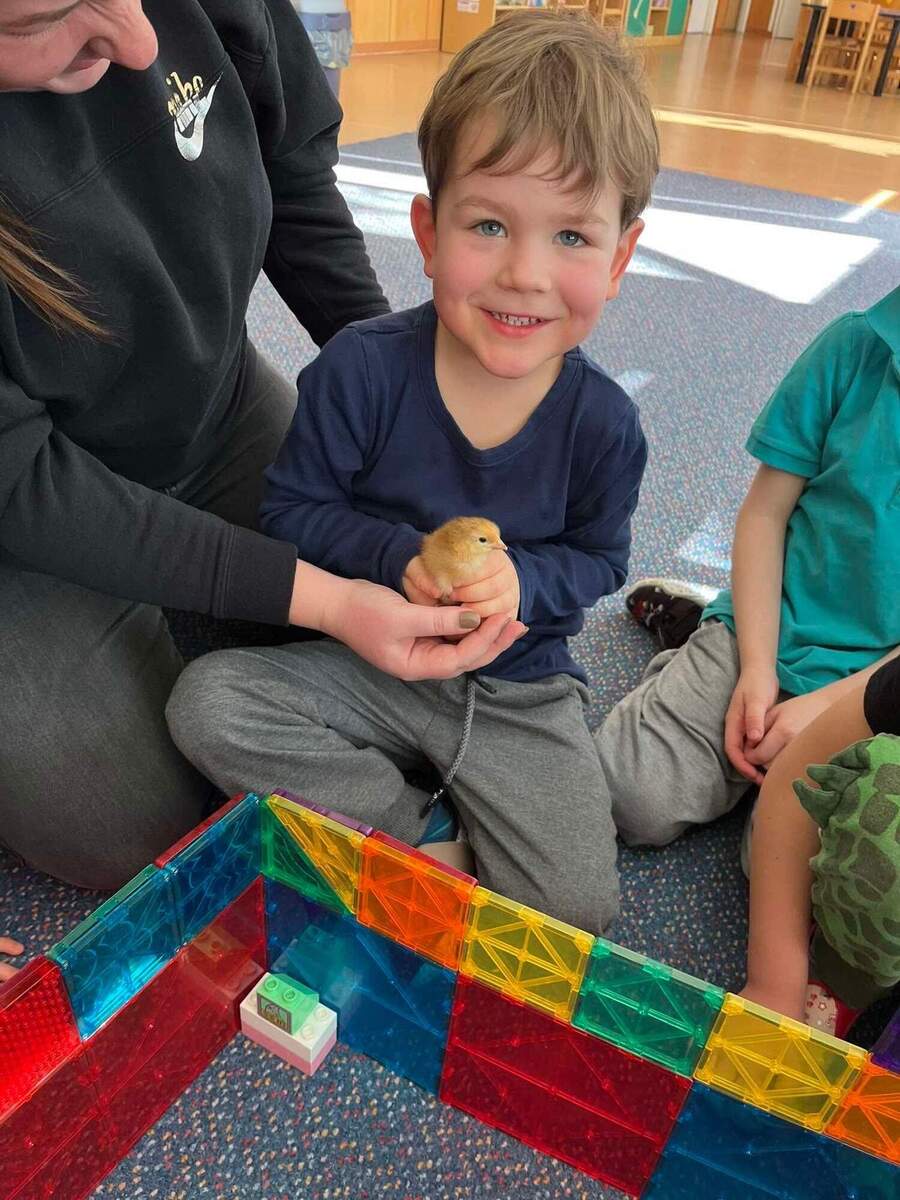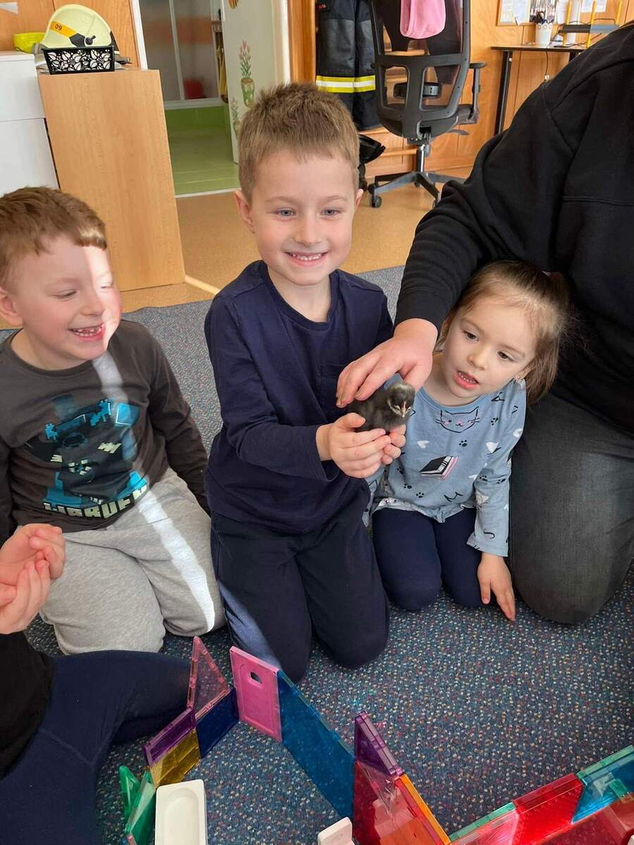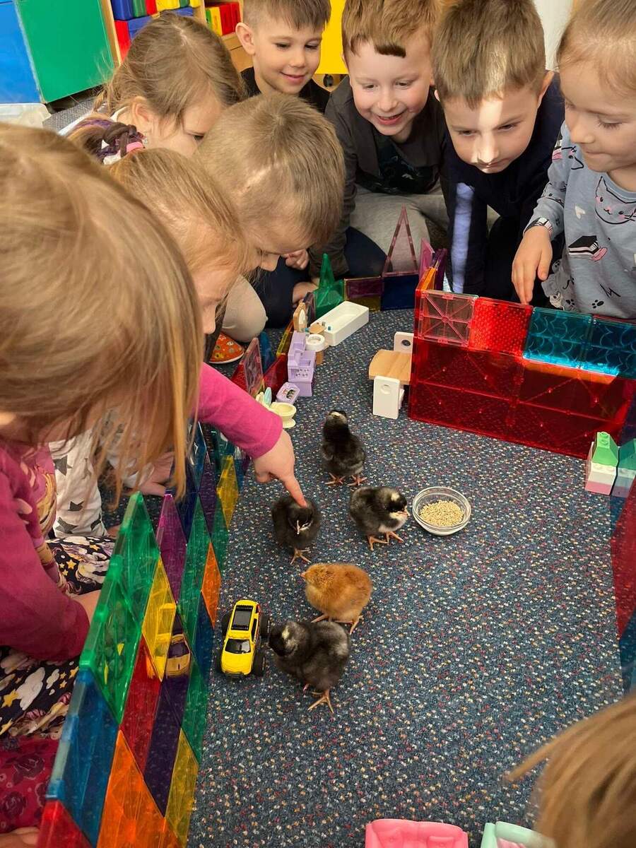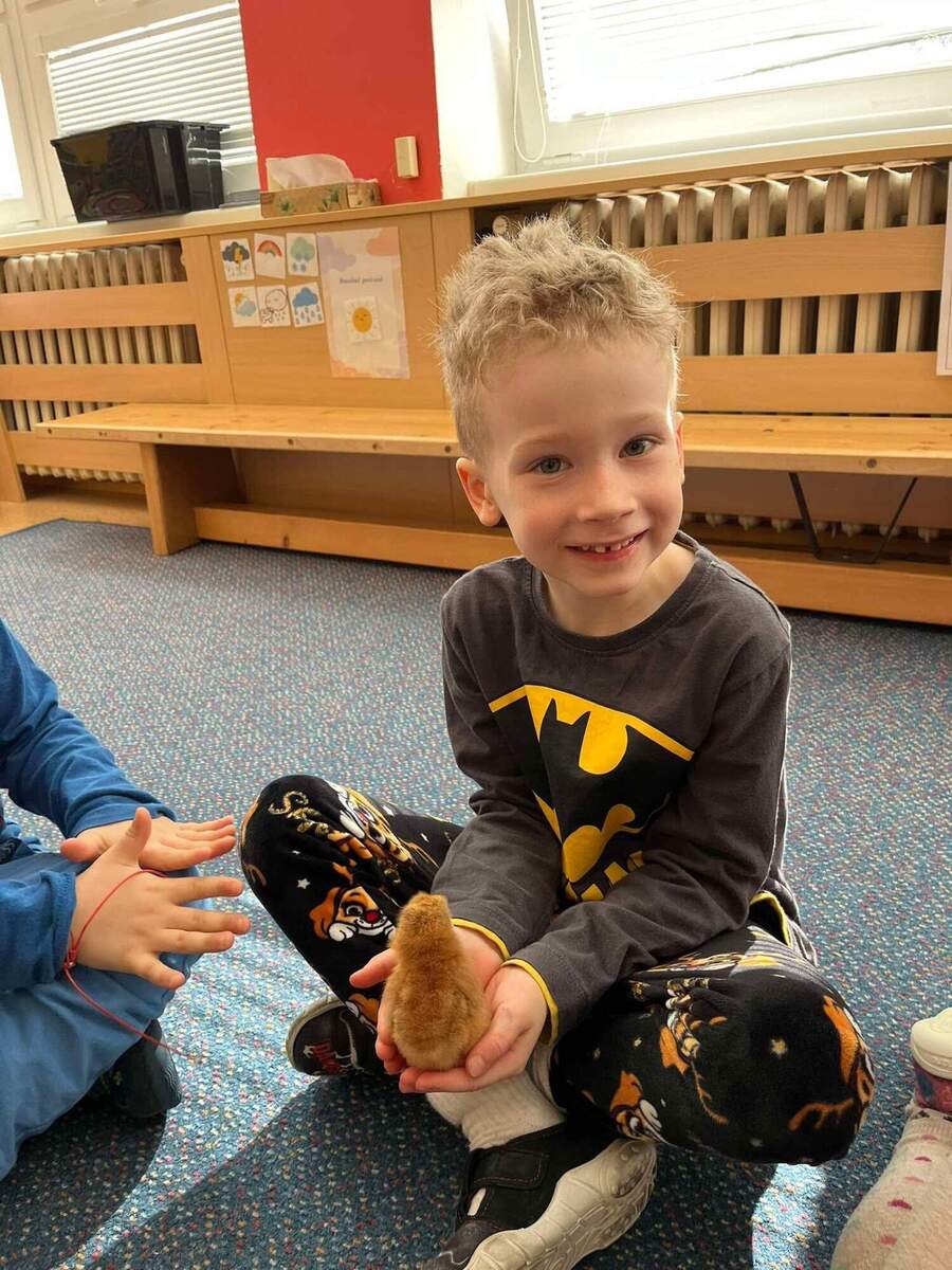 Ve školce jsme s dětmi pozorovaly, jak se z vajíčka vylíhnou kuřátka. Líhnutí probíhalo celý týden. Pozorování bylo velmi zajímavé a děti velmi bavilo. Nejvetším zážitkem bylo pro děti samotné seznámeními s kuřátky.