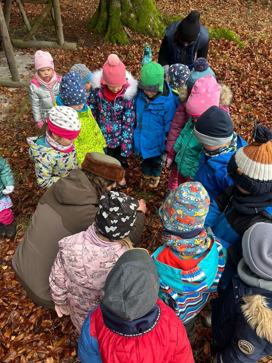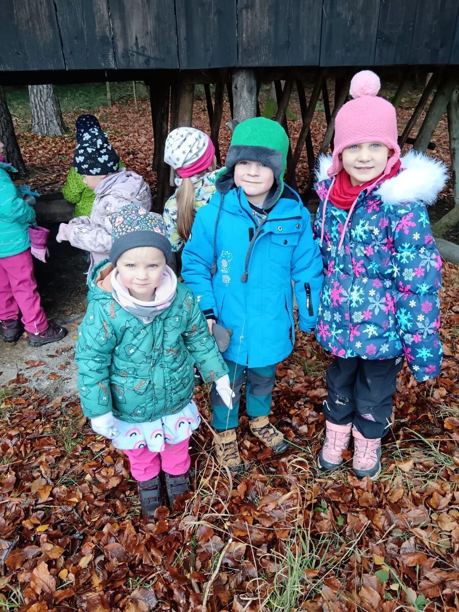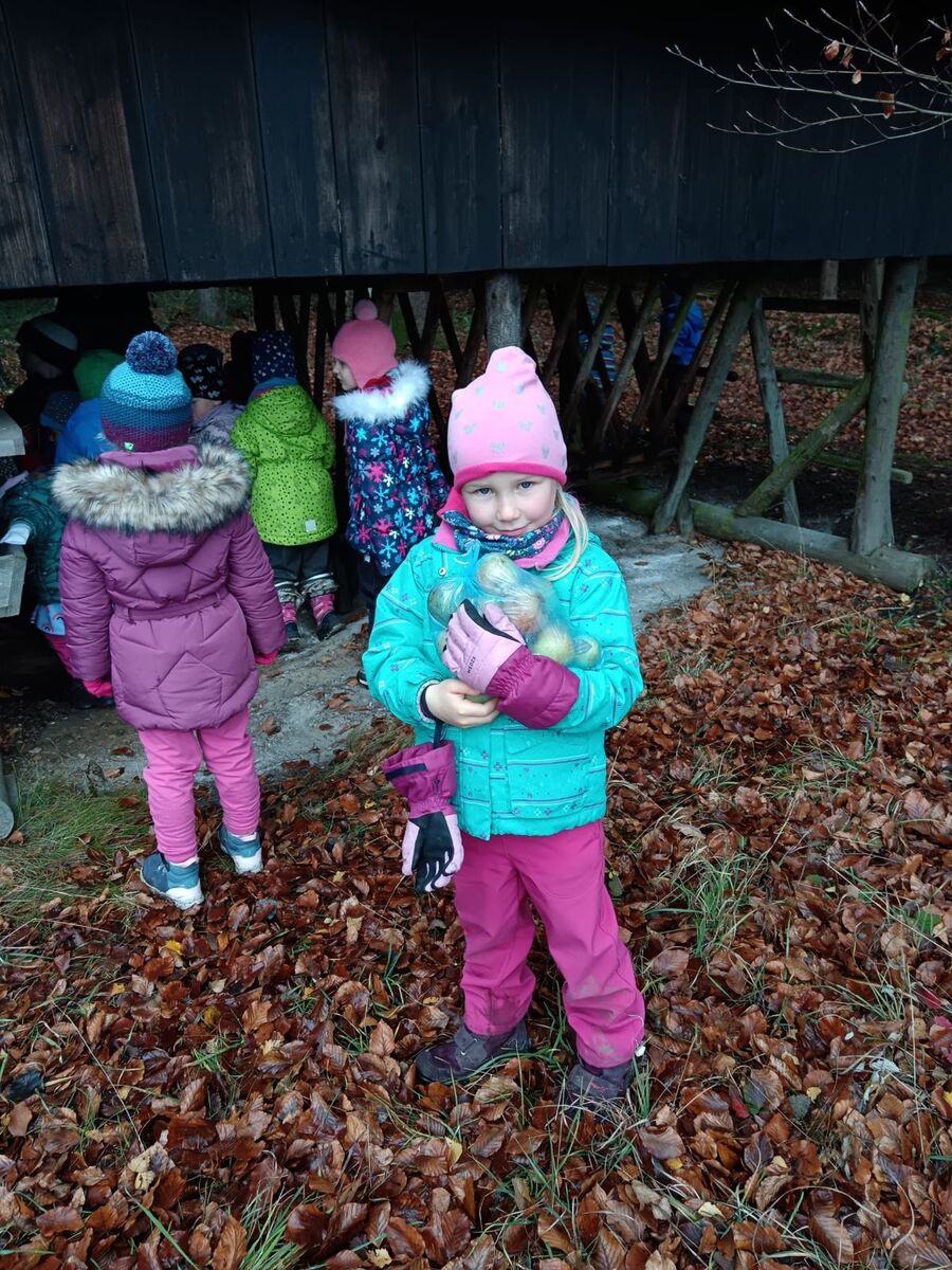 Začátkem listopadu jsme se jako každý podzim vydali s panem myslivcem nakrmit lesní zvířátka k nedalekému krmelci. Děti si samy nasbíraly kaštany, které jsme s sebou přinesli jako přírodní dobroty pro zvířata, a společně jsme je do krmelce uložili.