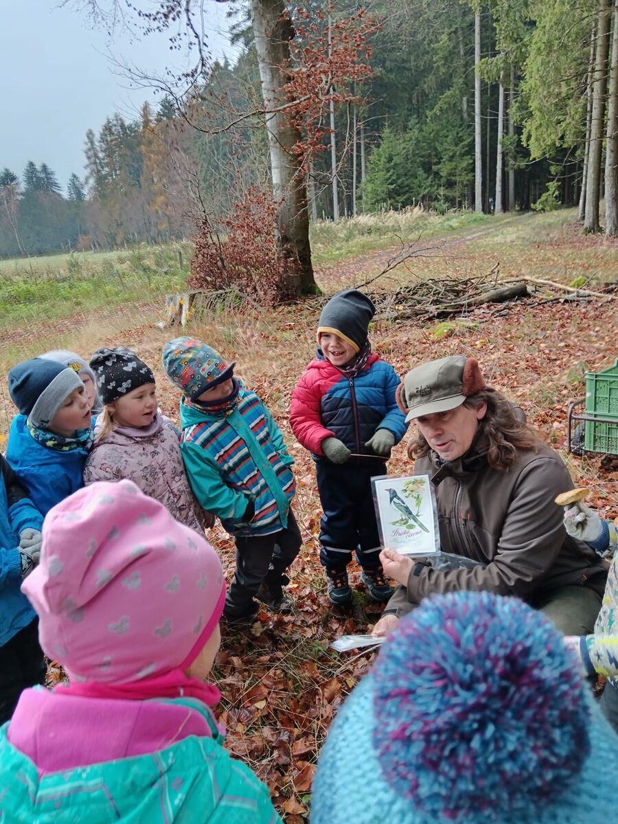 Cestou lesem nám pan myslivec vyprávěl o tom, jak se zvířata připravují na zimu, kdo krmelec navštěvuje nejčastěji a jak můžeme jako lidé přírodě citlivě pomáhat. Děti se dozvěděly i zajímavosti o lesních obyvatelích v našem okolí, o tom, co jim prospívá, a proč je důležité nenarušovat lesní prostředí.