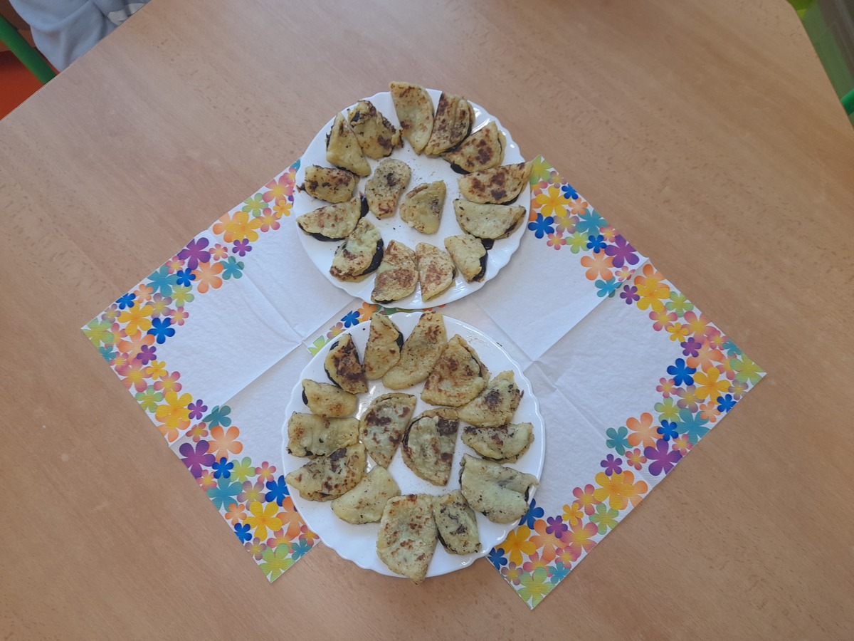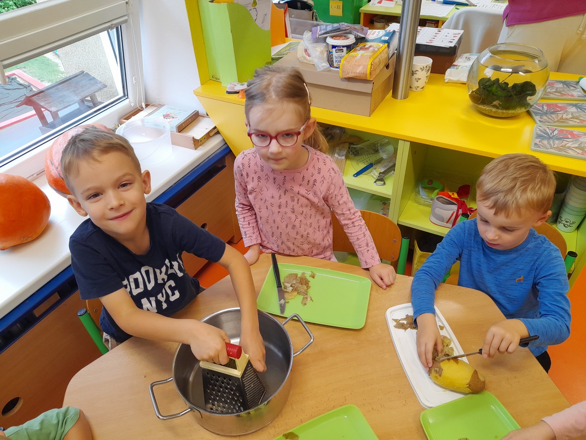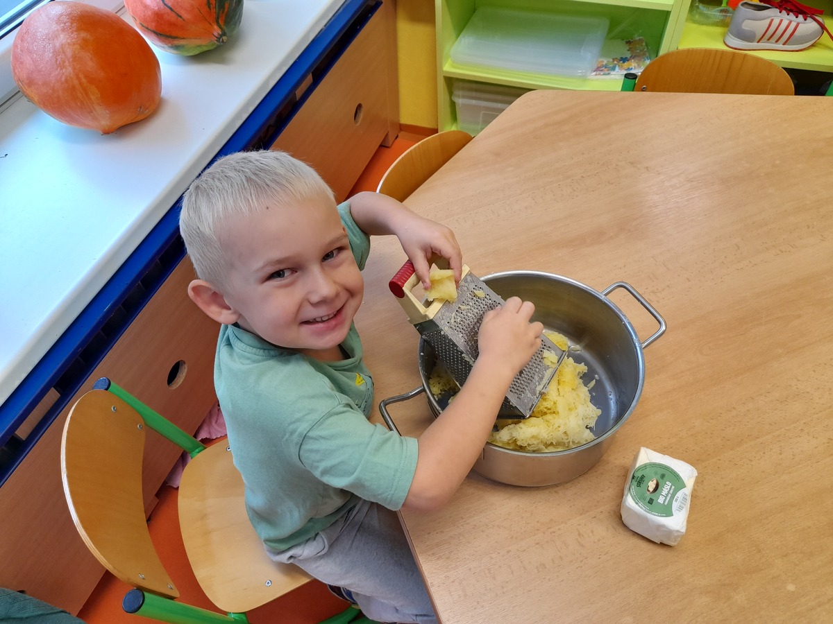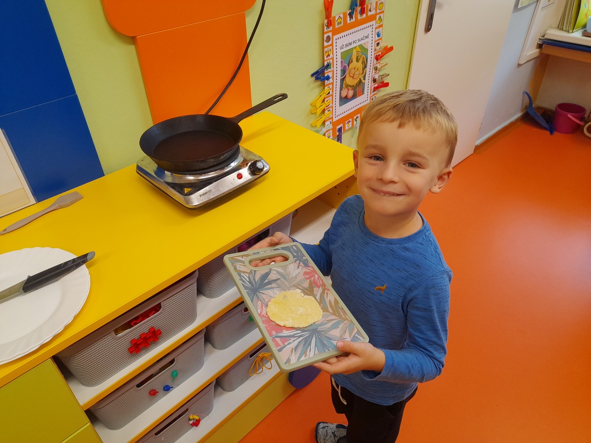 V naší mš každoročně pořádáme akci pro rodče s dětmi nazvanou Bramboriáda. Protože se ji děti nemohly dočkat, rozhodli jsme se v rámci "bramborového týdne" ve třídě Berušky připravit tradiční bramborové lokše. Děti se procvičovaly v loupání a strouhání vařených brambor a učily se rozvalovat těsto. Placky jsme smažili bez tuku na pánvi. Po upečení jsme je namazali povidly, pokapali biomáslem a posypali mákem. Zůstaly nám prázdné talíře, pusinky umazané od povidel a blažené pocity v bříškách.