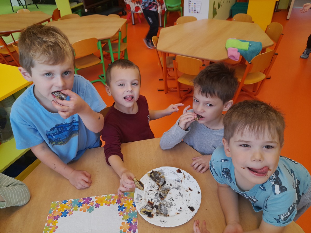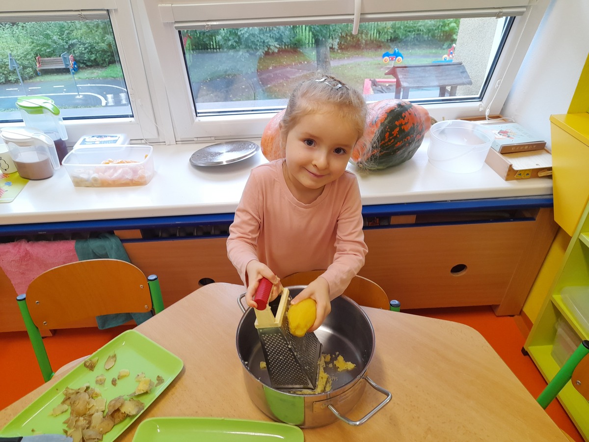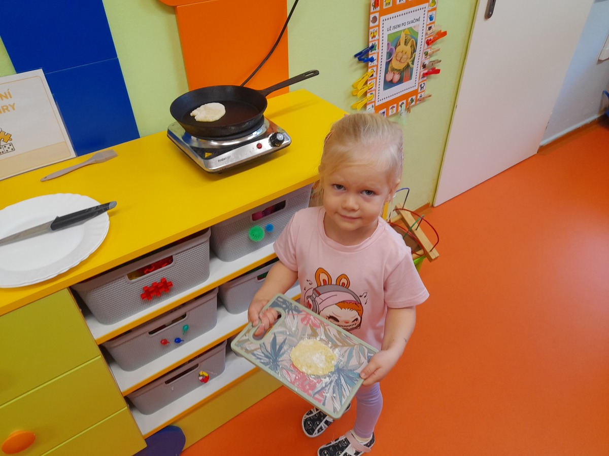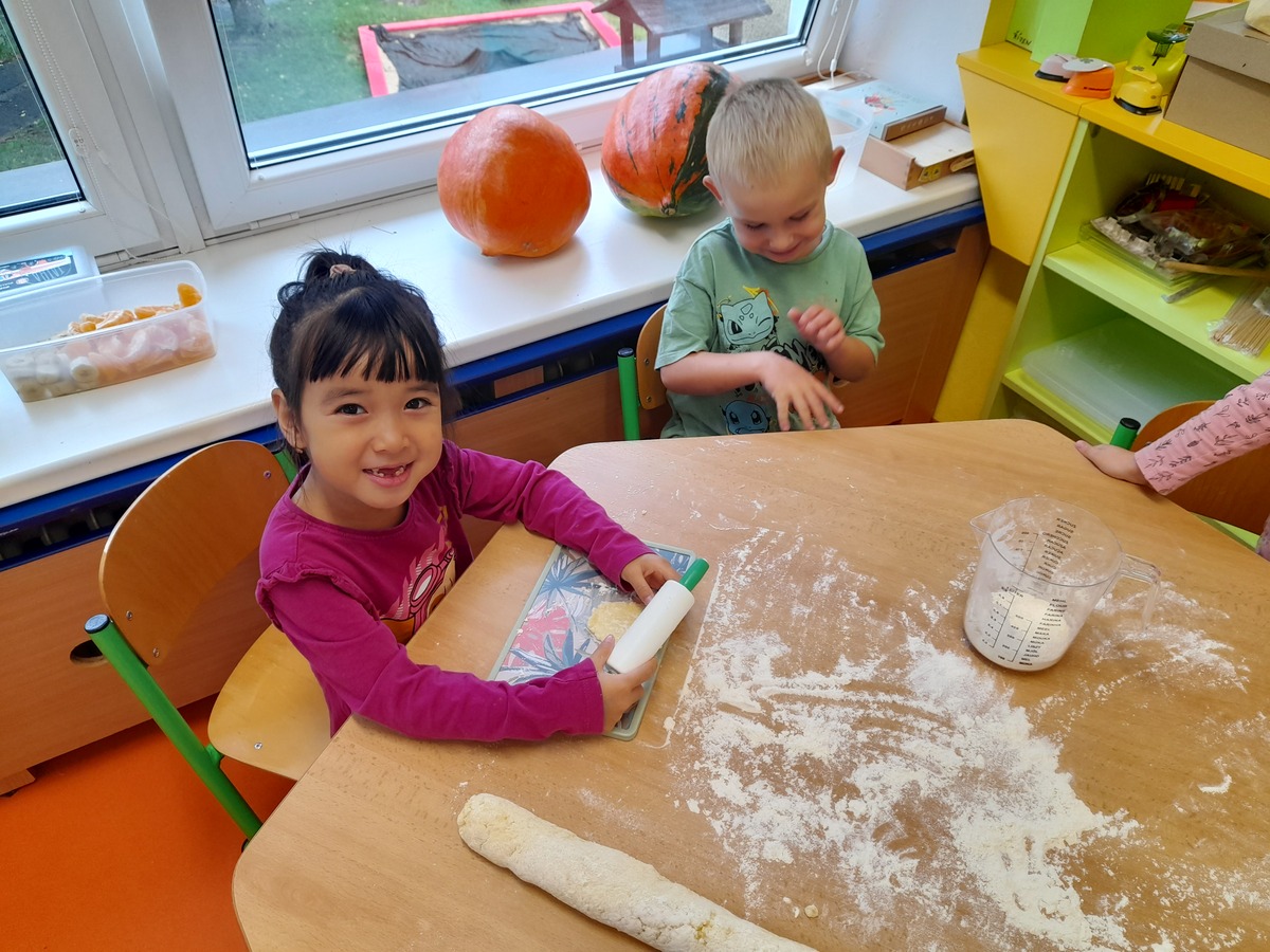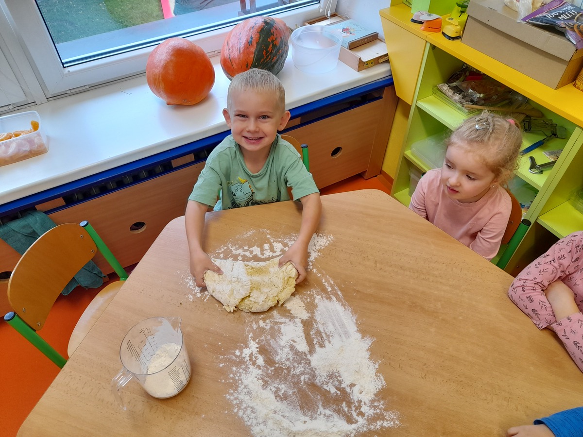 V naší mš každoročně pořádáme akci pro rodče s dětmi nazvanou Bramboriáda. Protože se ji děti nemohly dočkat, rozhodli jsme se v rámci "bramborového týdne" ve třídě Berušky připravit tradiční bramborové lokše. Děti se procvičovaly v loupání a strouhání vařených brambor a učily se rozvalovat těsto. Placky jsme smažili bez tuku na pánvi. Po upečení jsme je namazali povidly, pokapali biomáslem a posypali mákem. Zůstaly nám prázdné talíře, pusinky umazané od povidel a blažené pocity v bříškách.