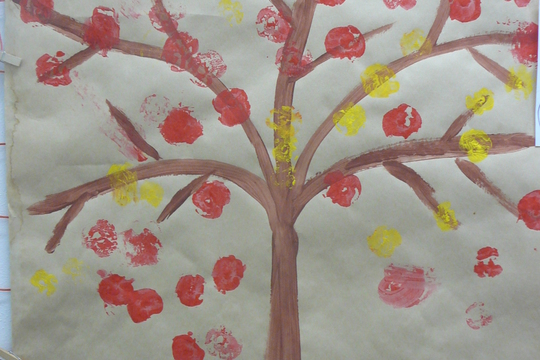 Ve třídě Modřínků mají rádi ovoce! A to na všechny způsoby. Nejen, že chutné ovoce jí skoro denně ke svačince, ale zkouší ho využít i při výtvarných činnostech. Děti zjistily, že obtiskování jablíček i jejich výroba pomocí trhaného papíru je velká zábava.