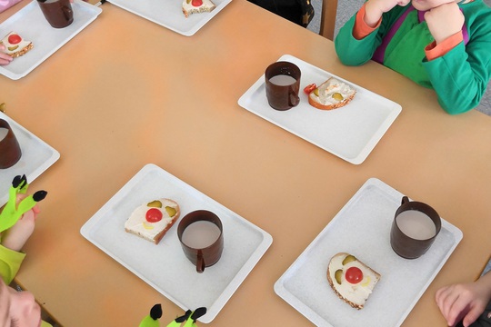 Aby bylo vše stylové paní kuchařky jim připravili zdravé chleby s cizrnovou pomazánkou a nazdobily je do tvaru klauna.
