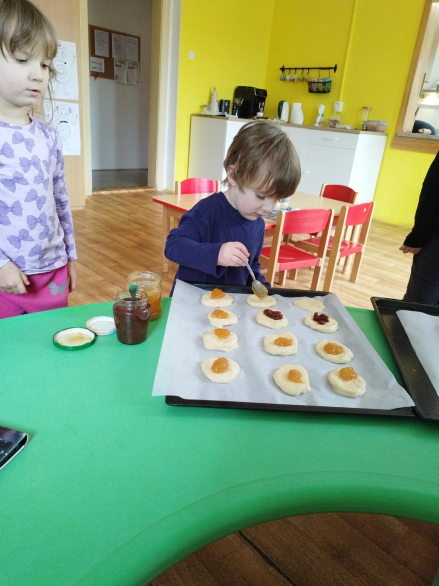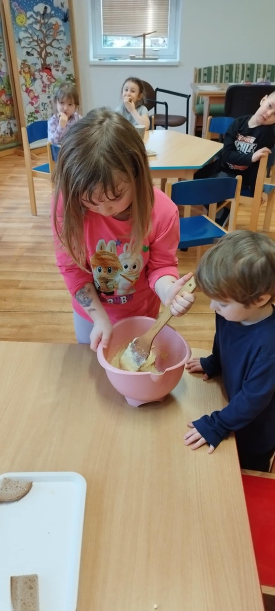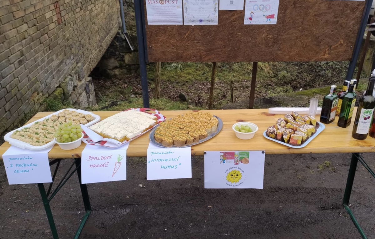 Uplynulé dny se u nás nesly v duchu masopustních tradic. Společně jsme si povídali o masopustních zvycích, děti si upekly masopustní koblihy- ve zdravějši verzi- pečené v troubě. Dokonce jsme se byli podívat na prasátko před zabijačkou, abychom dětem přiblížili vesnický život. Na závěr jsme se zapojili do obecního průvodu, kde si školka připravila pro maškary občerstvení v podobě našich vynikajícich pomazánek a špaldového mrkváče. Společně jsme si užili zpěv, smích a pravou masopustní atmosféru.