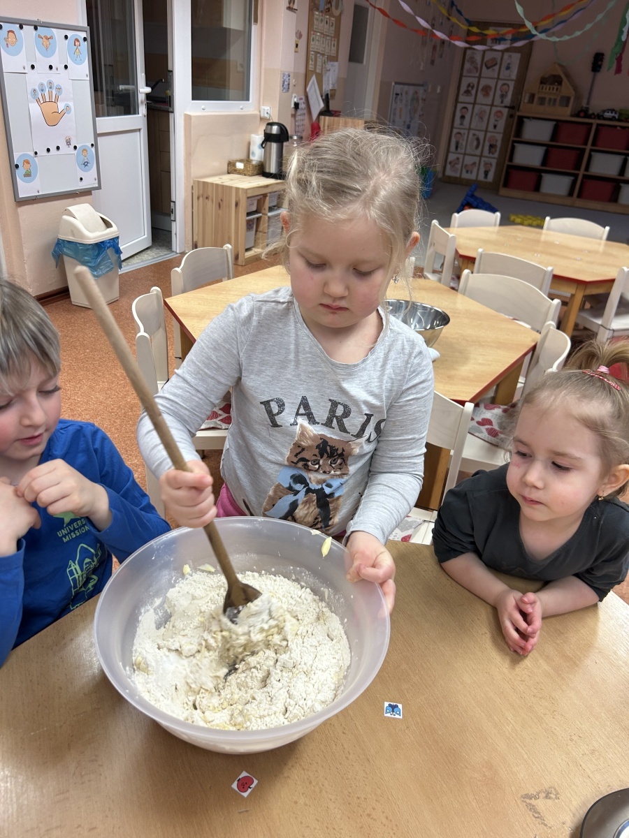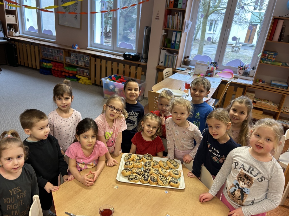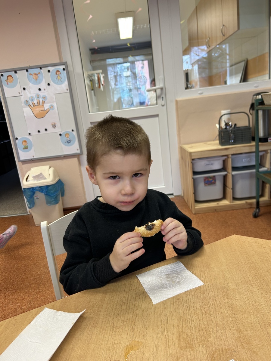 Po obědě přišla ta nejlepší chvíle – ochutnávka. Každé dítě si s radostí pochutnalo na svém výtvoru a druhý koláč si odneslo domů, aby se o masopustní dobrotu podělilo s maminkou a tatínkem. Vůně koláčů zůstala ve školce ještě dlouho poté a připomínala krásný společný zážitek.